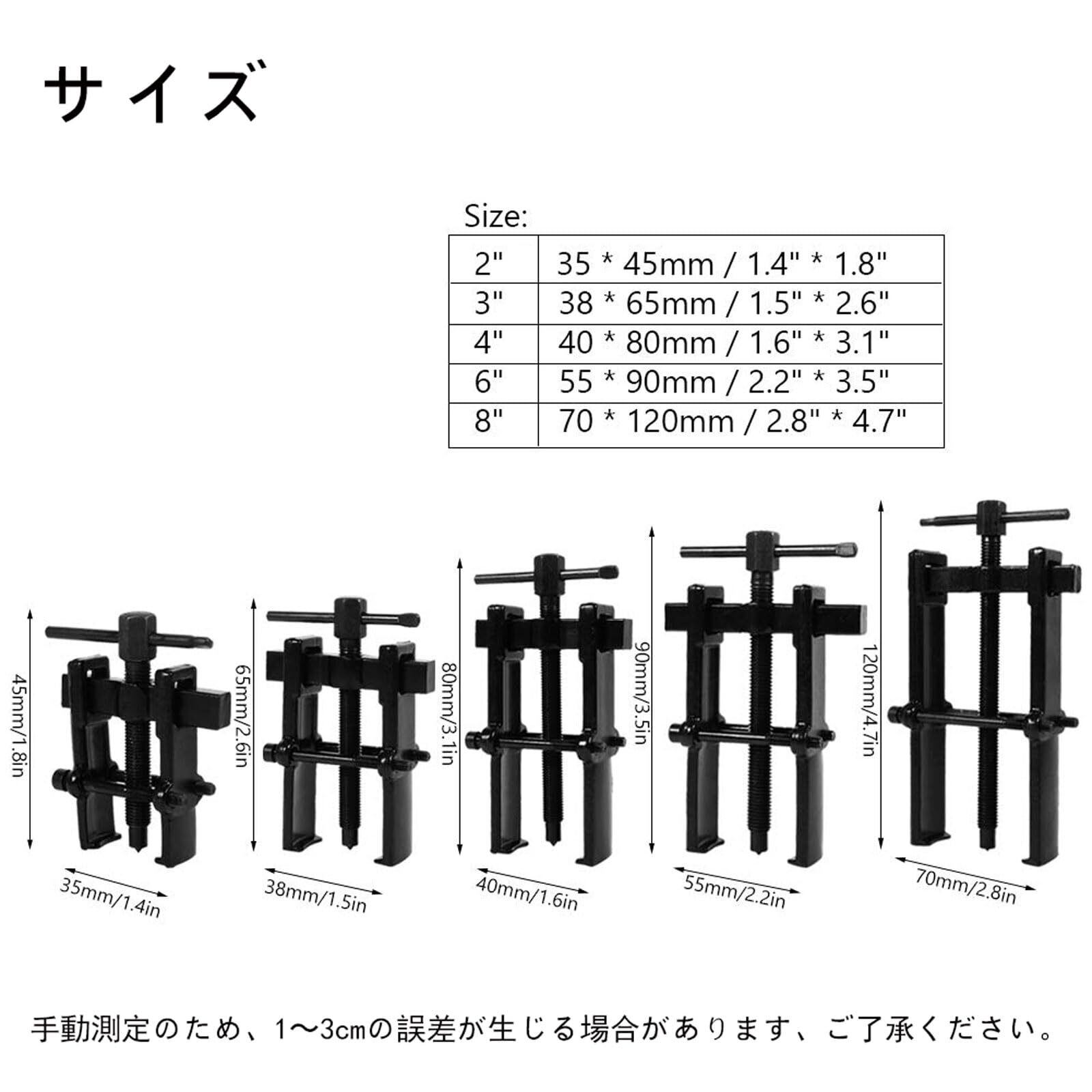 【用途】:付属のボルトで爪を締め、ベアリングをしっかりと固定します。電気部品、機械軸受、プーリー、自動車部品などのベアリングの脱着に適しています。