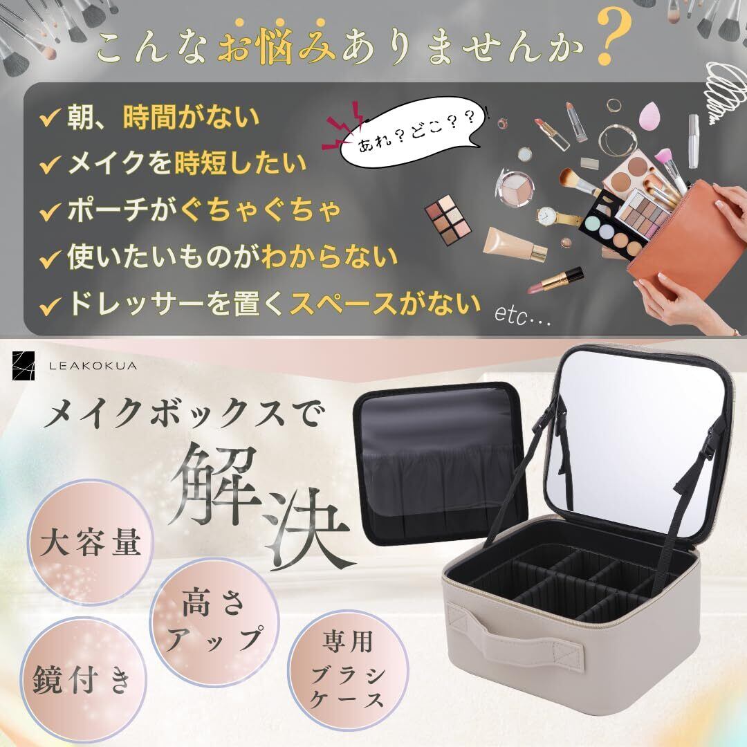【在庫セール】LEAKOKUA(レアコクア) メイクボックス 【高さアップ×鏡付き】 メイクポーチ 大容量 コスメボックス 化粧ポーチ コスメポーチ プロ用 収納ケース 持ち運び 小物入れ (01.back) | gsmshop