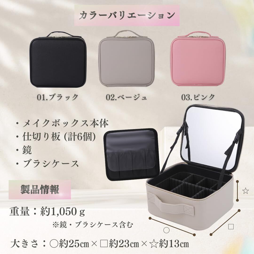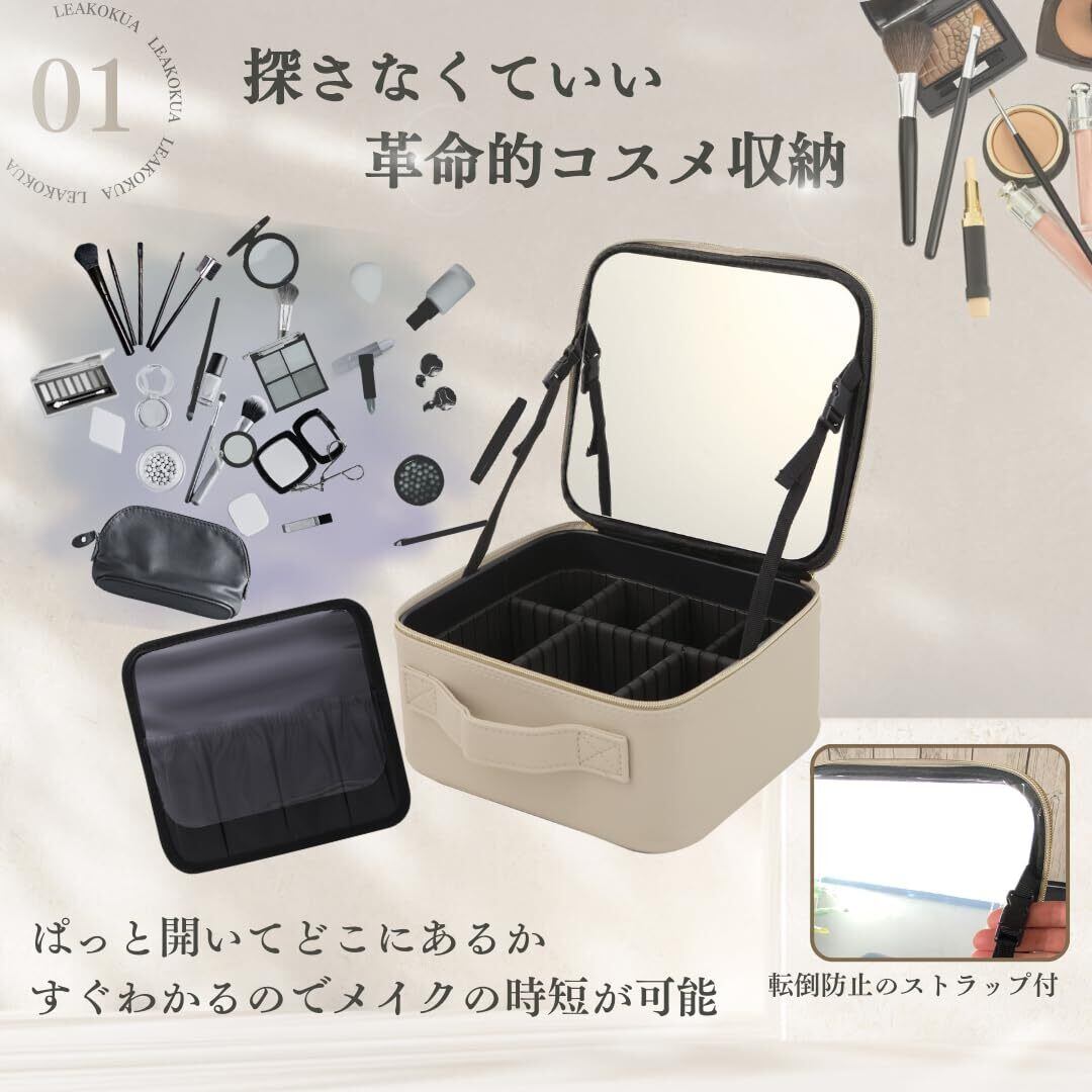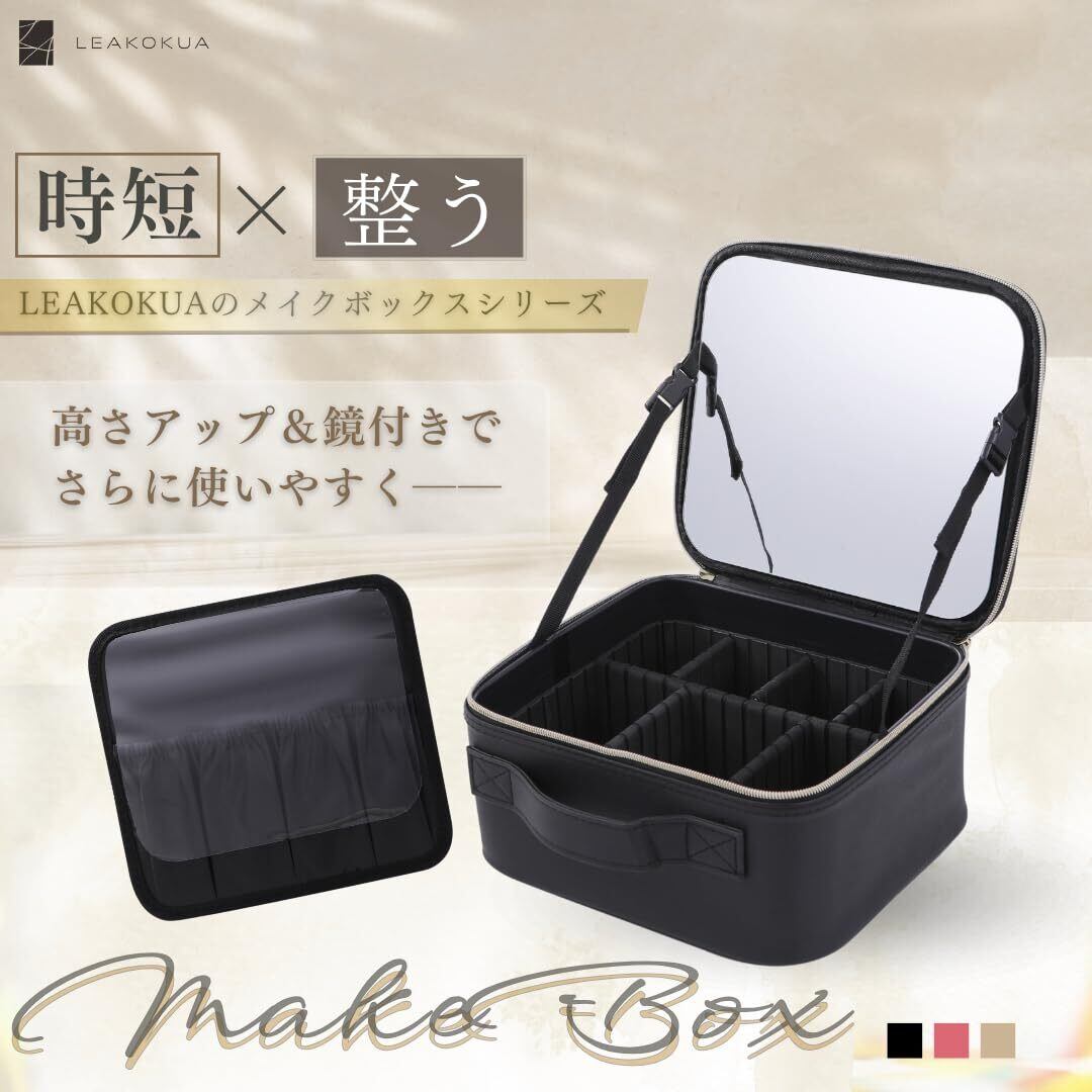 LEAKOKUA(レアコクア) メイクボックス 【高さアップ×鏡付き】 メイクポーチ 大容量 コスメボックス 化粧ポーチ コスメポーチ プロ用 収納ケース 持ち運び 小物入れ (01.back)