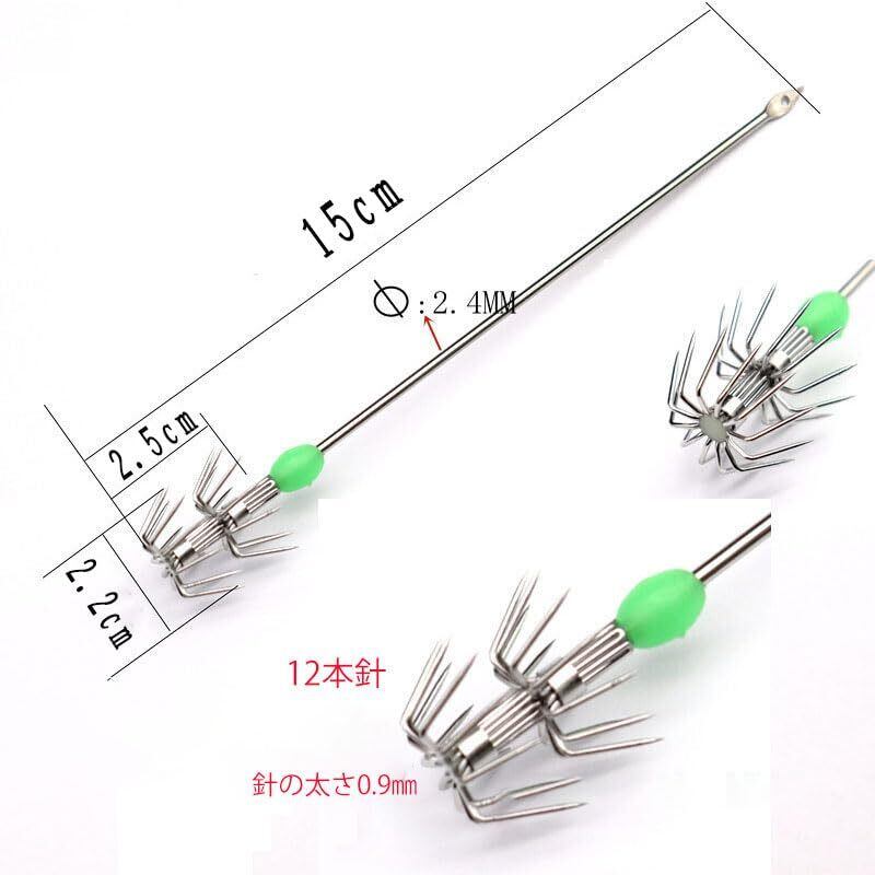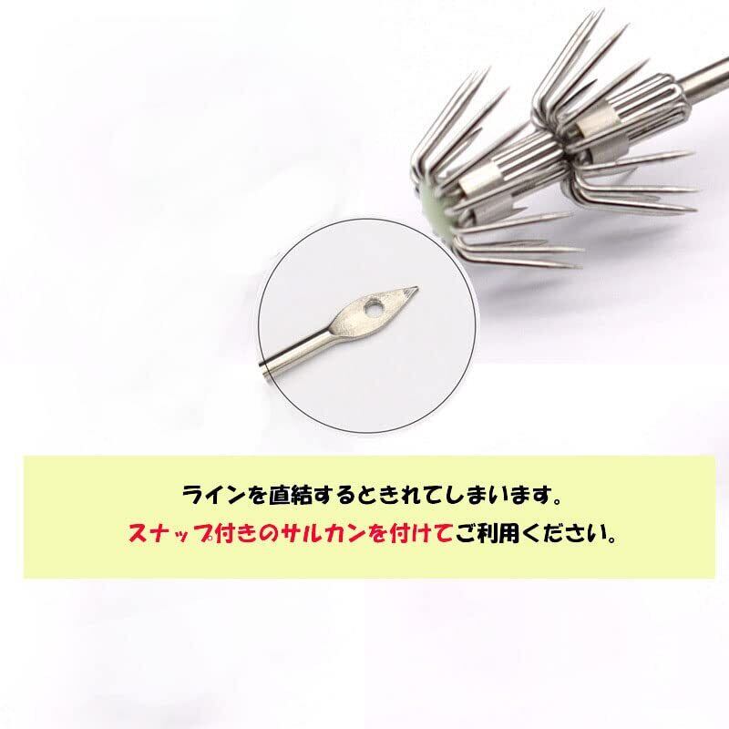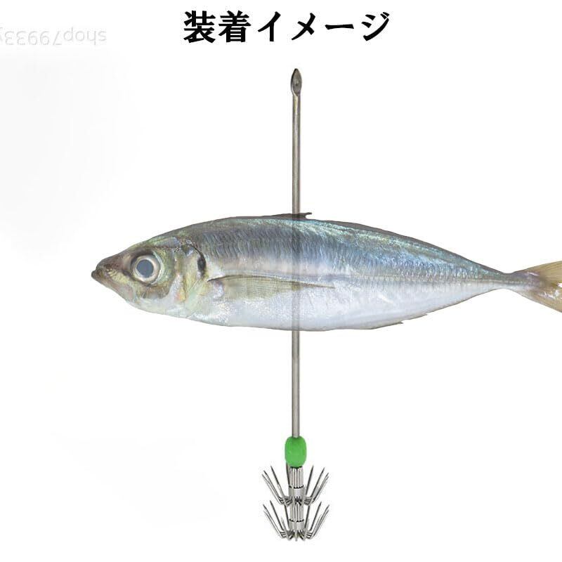 素材:スチール 数量:5本 サイズ:長さ 約17㎝ 針の大きさ 2.5㎝ 重量:約55g/個 冷凍のアジやキビナゴ、イワシを付けてご利用いただけます。