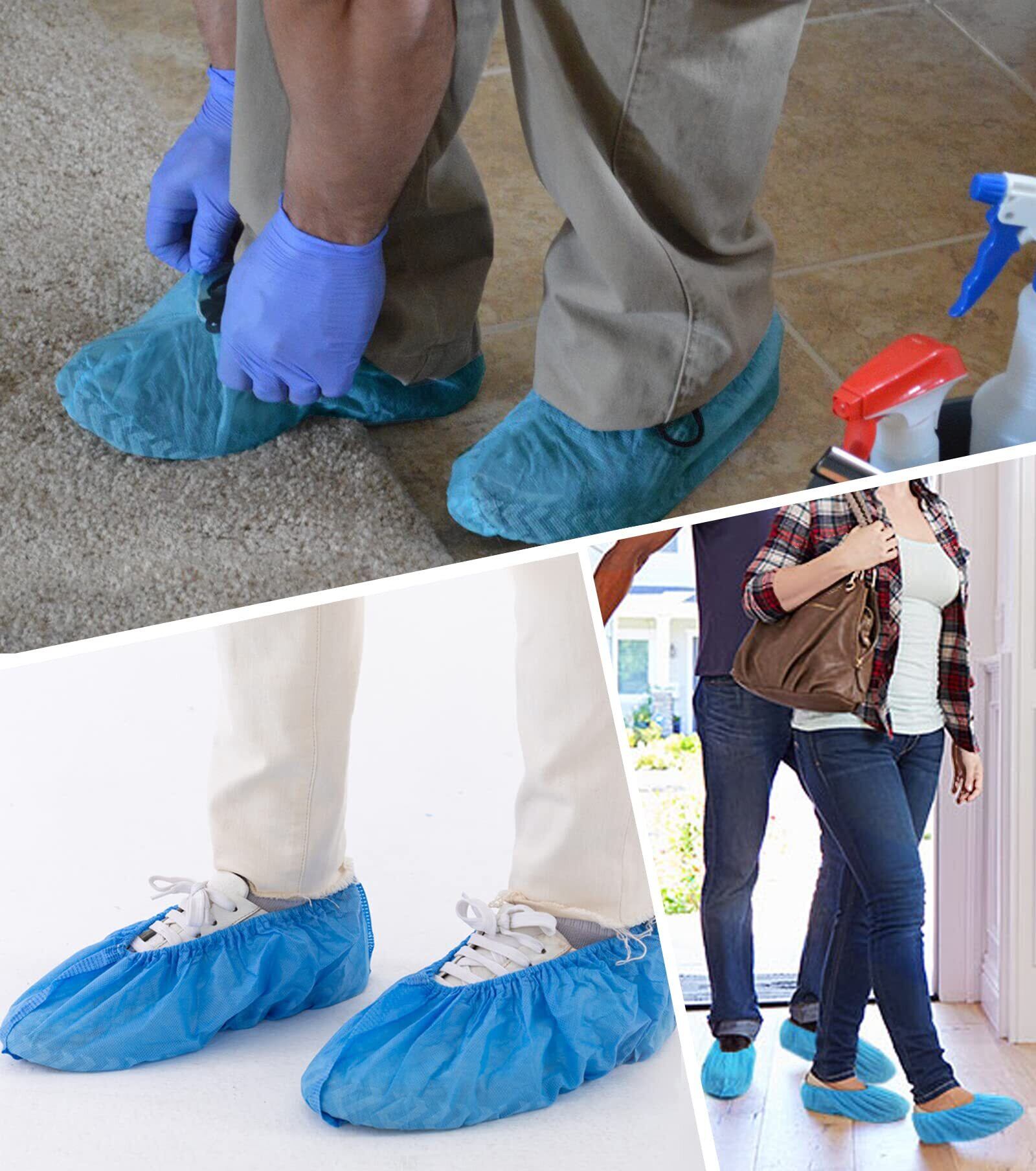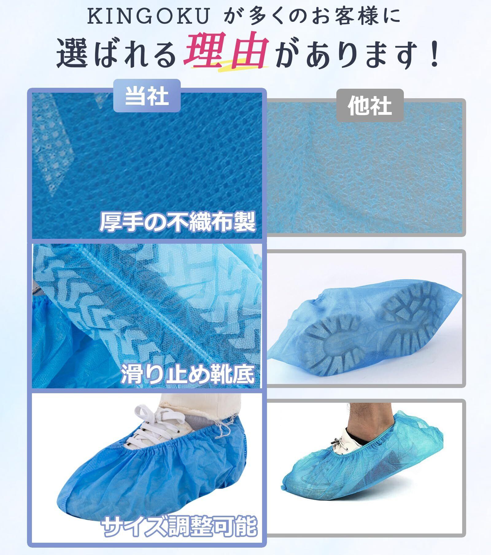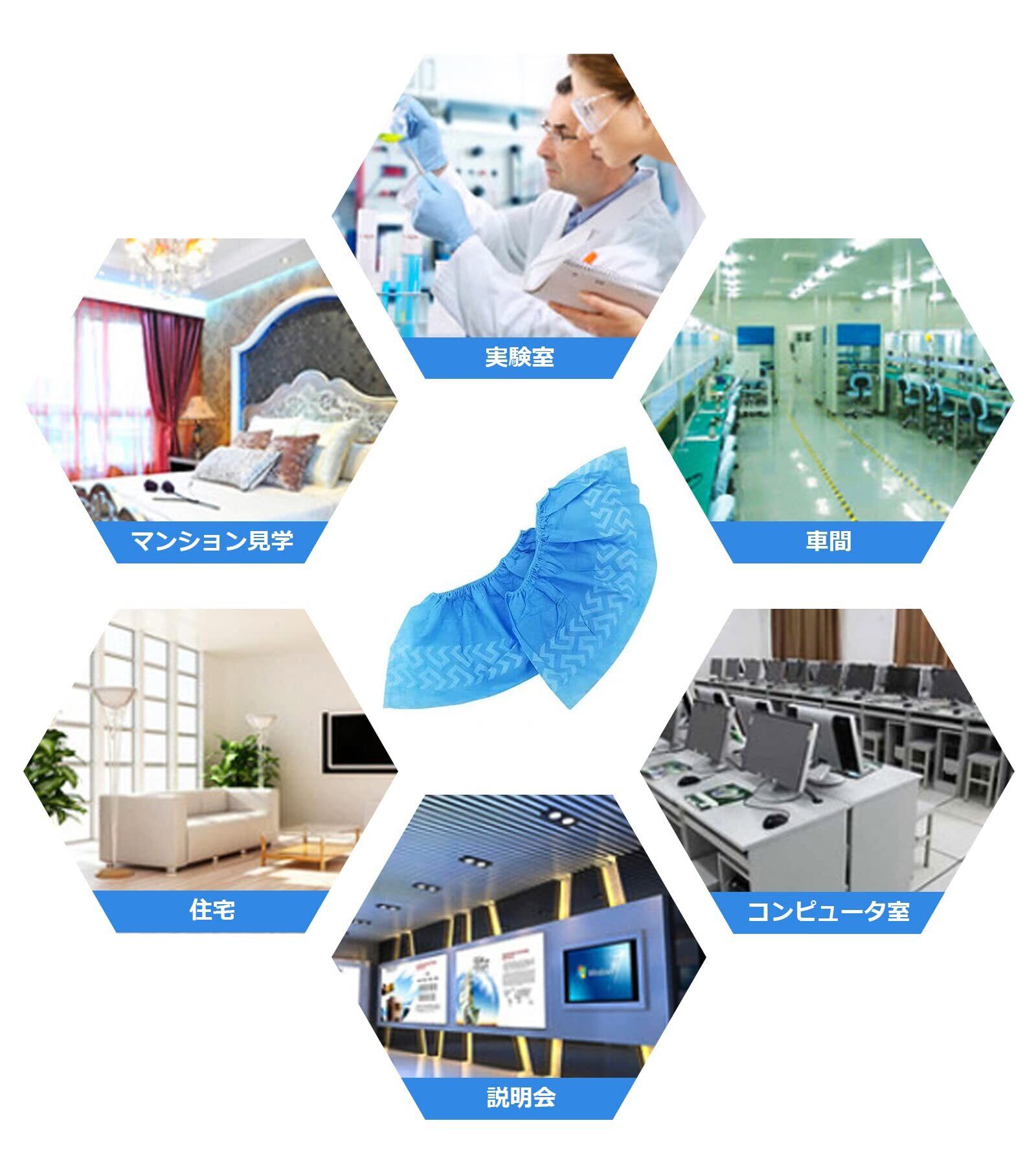 靴カバー 使い捨て シューズカバー 100枚入(50足) 不織布 厚手タイプ 滑り止め 防塵 防汚 フリーサイズ 男女兼用 作業場 事務所 実験室 来客用 (ブルー)
