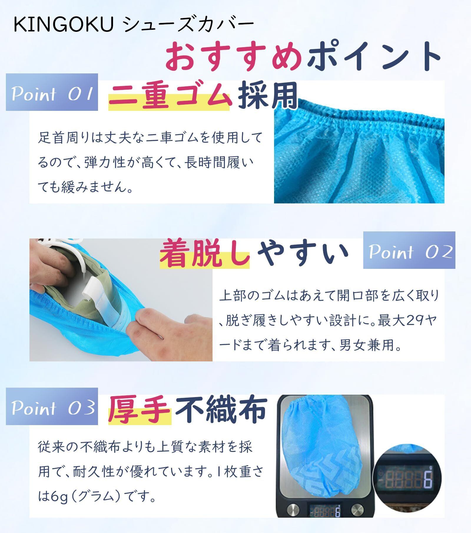 【高品質·耐久性】不織布を厚く采用したことで、1枚の重さは6グラムで、市販の他の同類の制品よりグラムの重量が高くて、耐摩耗性、耐久性が強いです。素材自体の通気性のため、普通のプラスチック製の靴カバーよりも通気性に優れています