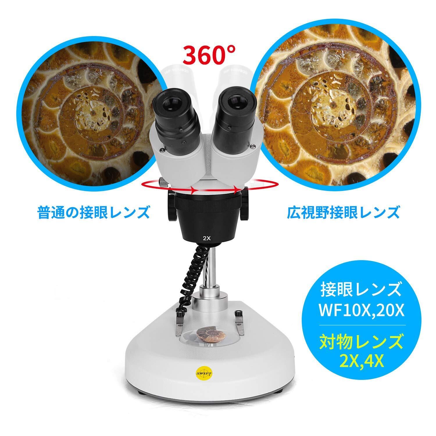 【数量限定】SWIFT 双眼実体顕微鏡 立体顕微鏡 LED光源付 落射、透過照明 金属製 両眼ヘッド、360度回転ヘッド 広視野接眼レンズ10X、20X付き、総合倍率:20倍、40倍、80倍 研究用、実験用、高倍率実体顕微鏡 PSE認証済 S306S-20-2L | gsmshop