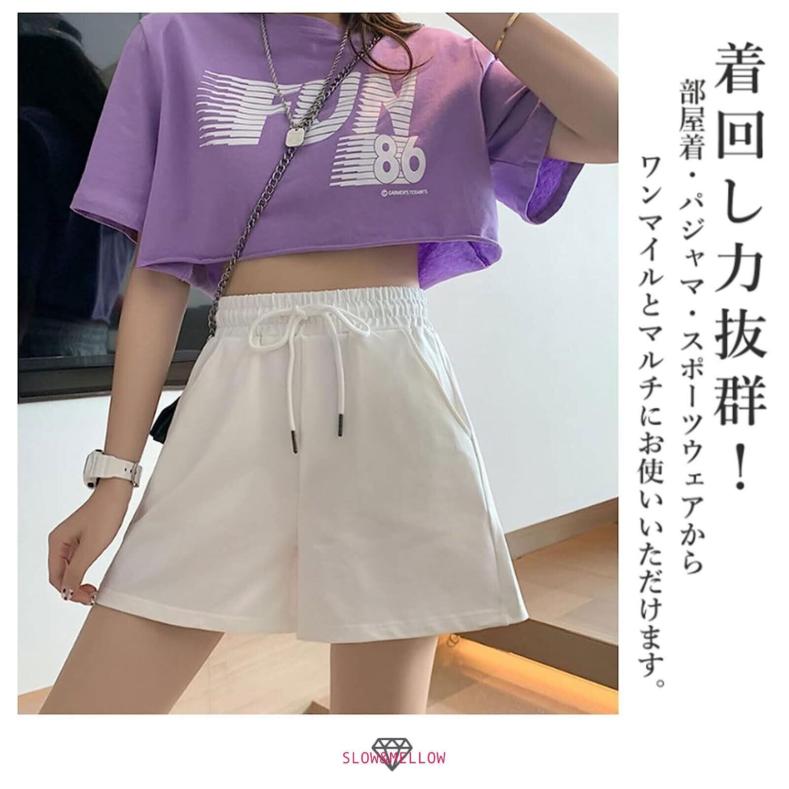 【数量限定】[SLOW&MELLOW] ハーフパンツ レディース スウェット Aライン シンプル 無地 ルームウェア ショート パンツ スポーツ カジュアル 部屋着 ウエストゴム 短パン 3カラー | gsmshop