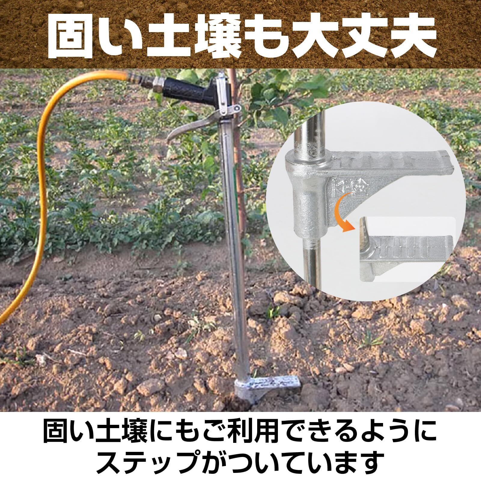 軽量で片手で操作可能: 片手で簡単に操作することができます。ステップが付いているので、固い土壌でも作業が出来ます。これにより、長時間の作業中でも負担が少なく、効率的に作業を行うことができます。