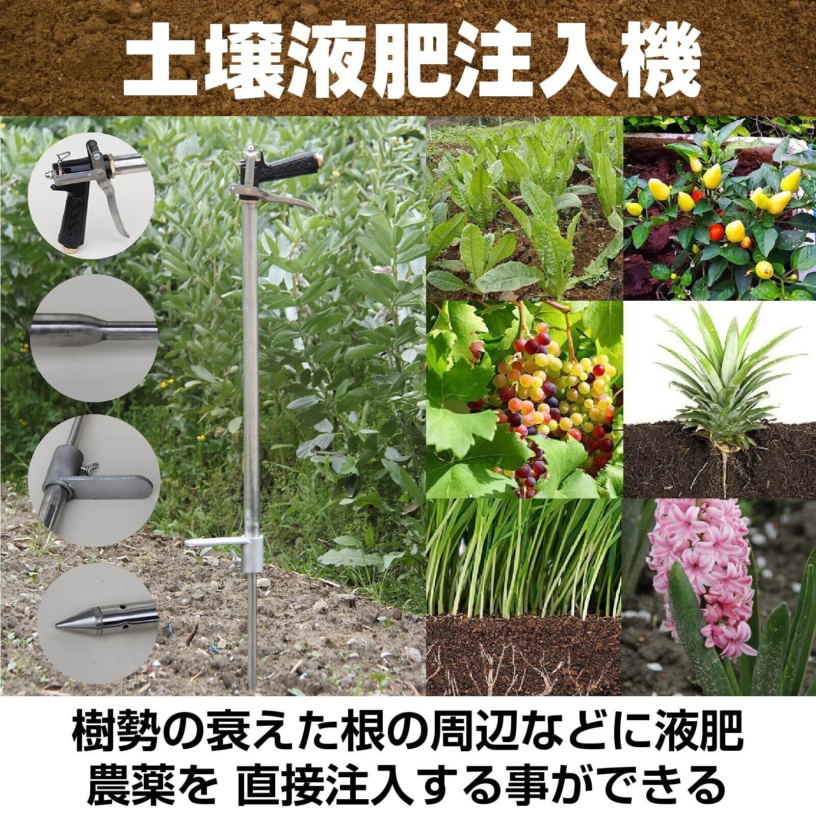土壌改良の簡便さ: 土壌液肥注入機を使用することで、土壌改良作業が簡単に行えます。液肥を均等に注入することで、土壌の栄養バランスを調整し、作物の成長を促進することができます