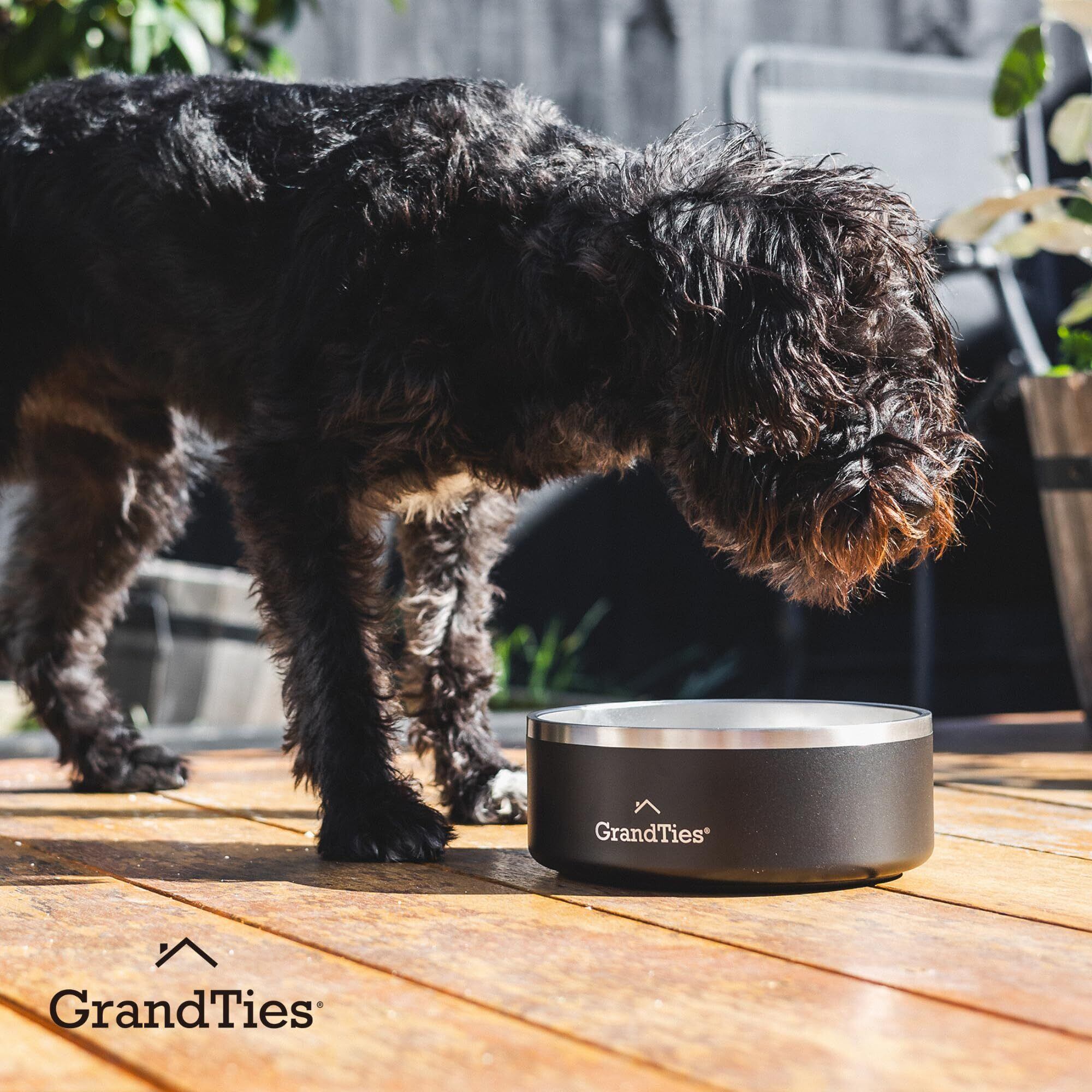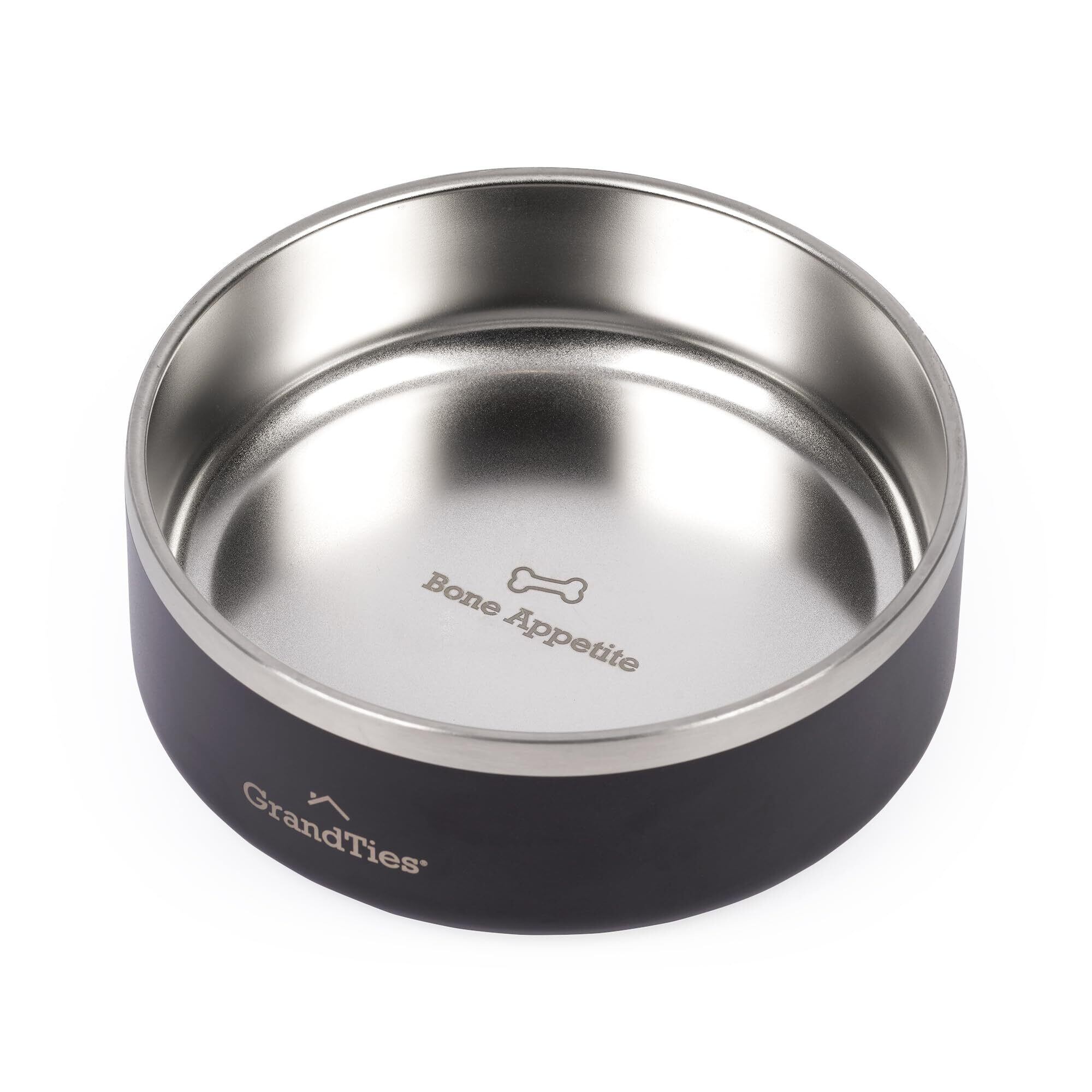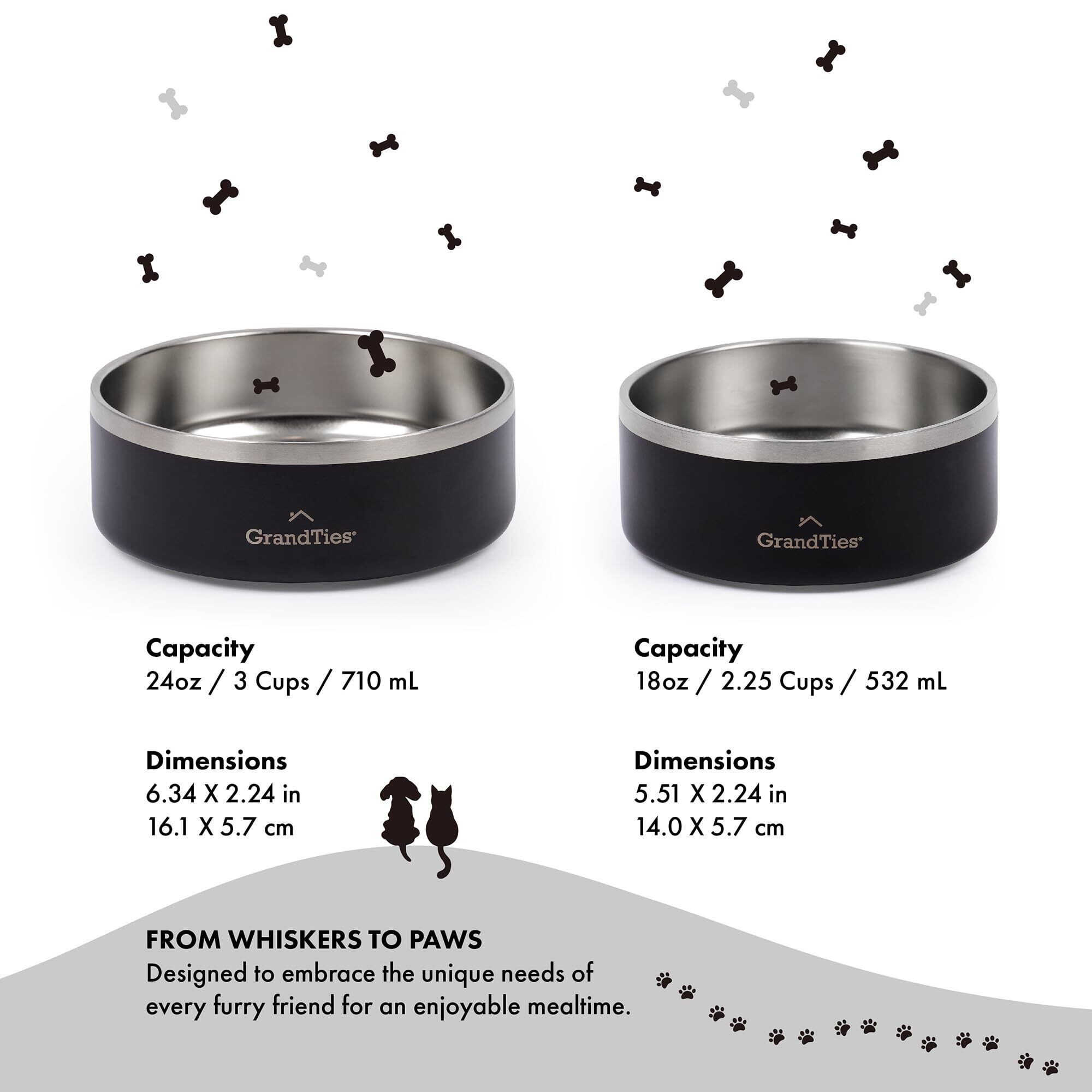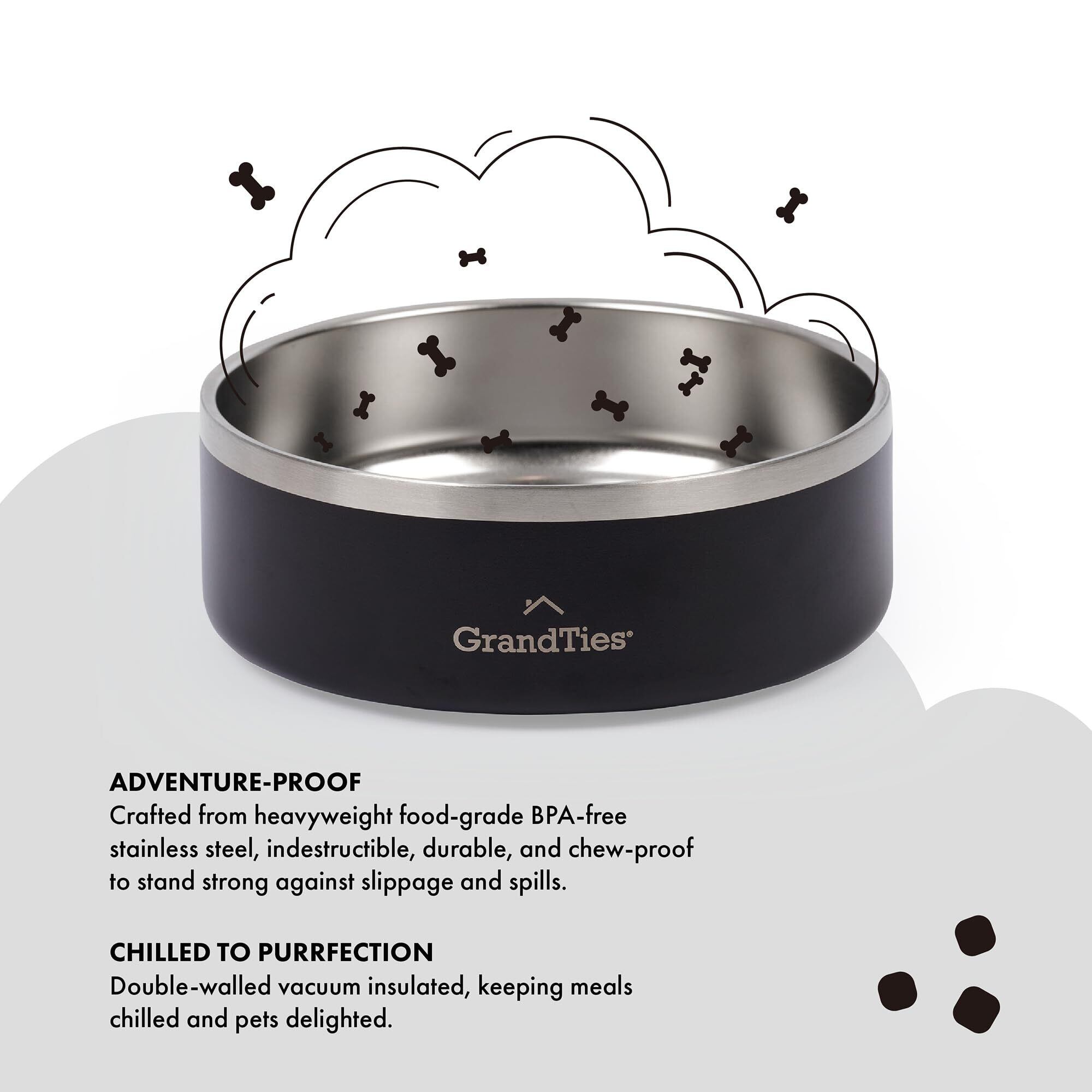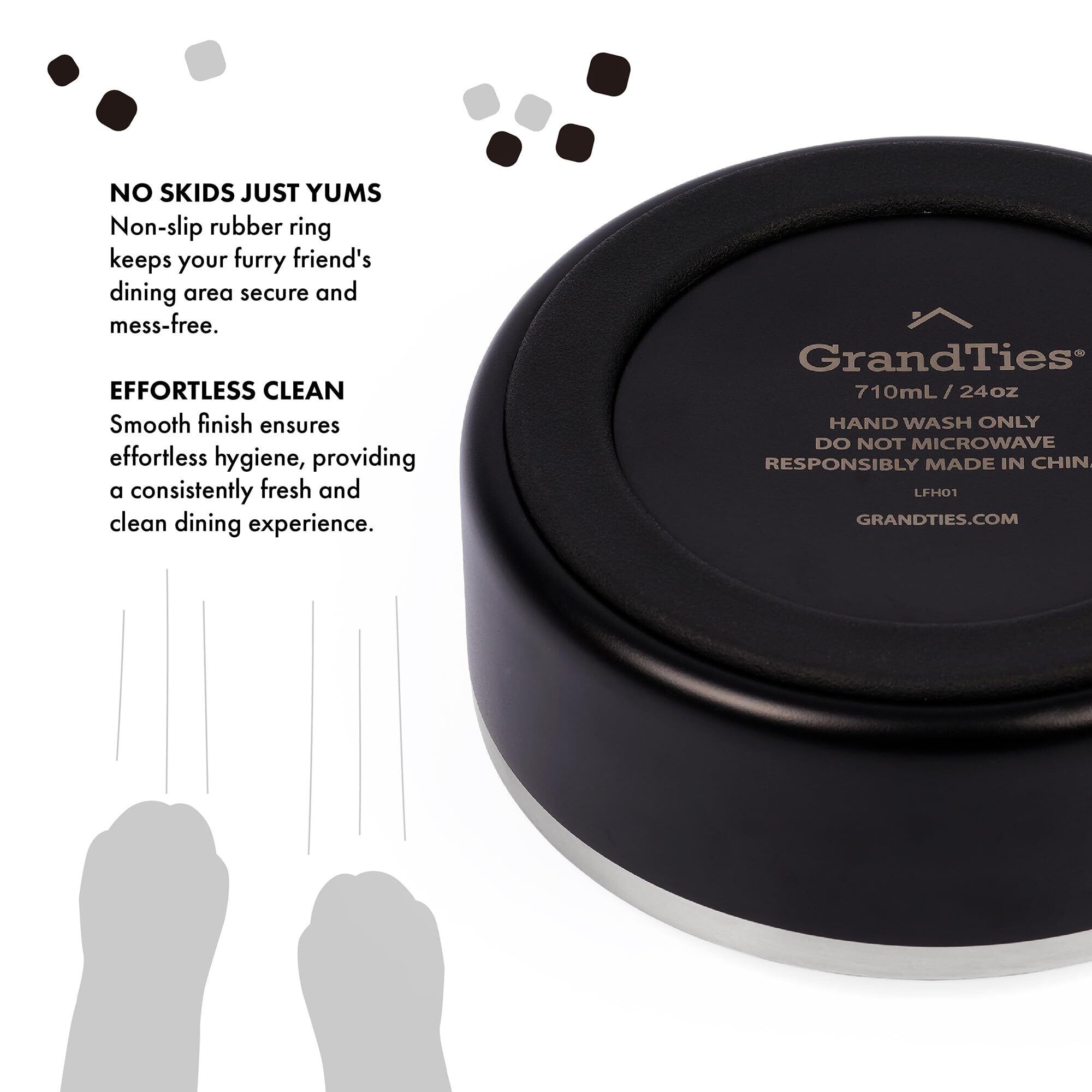 GRANDTIES グランタイズ 真空断熱ペットボウル 餌用ボウル 犬 猫 dog catペット用 おしゃれ プレミアム 水分補給 保温保冷 底面滑り止め付き 自宅 散歩 (ミッドナイトブラック, 710ml Sサイズ)