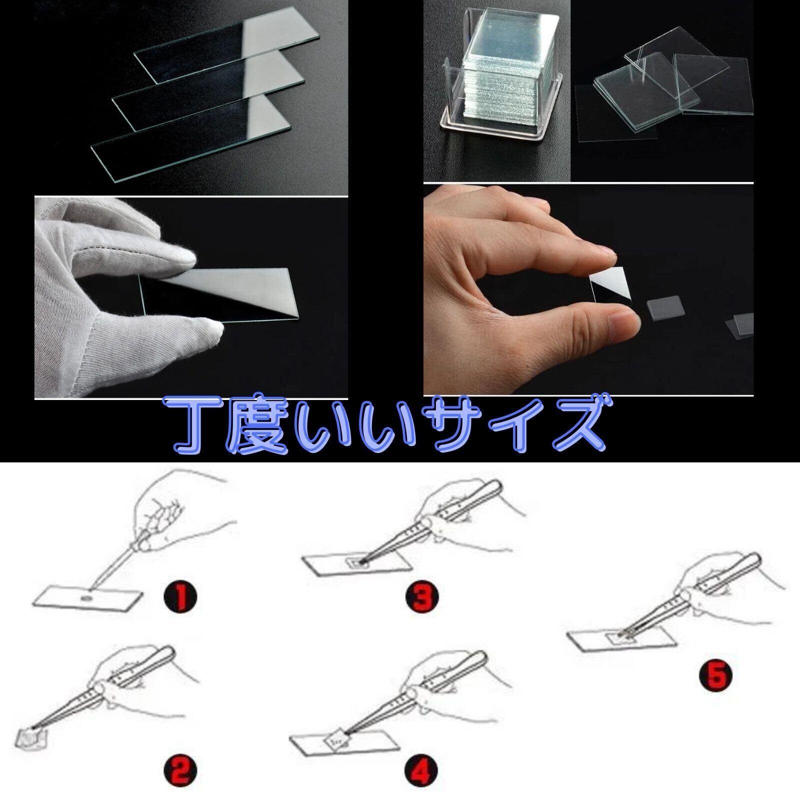 【顕微鏡に必要】顕微鏡で観察する際には、カバーガラスとスライドガラスの両方が必要です。スライドガラスに観察したいものを乗せ、その上にカバーガラスをかぶせます。これでプレパラートが完成します。どちらも必要なため、お得なセットでご用意しました。