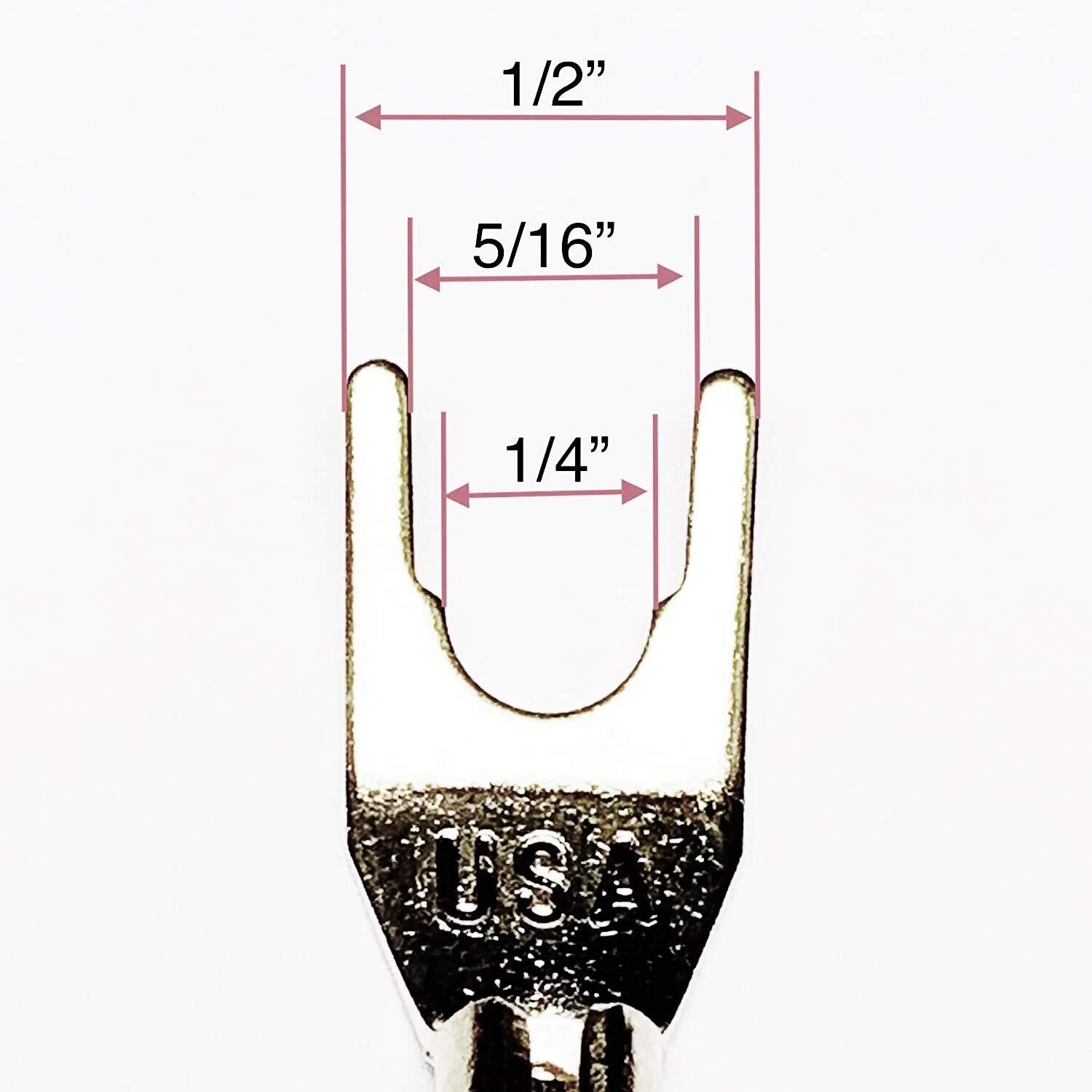 スペードオープンサイズ:1/4インチ〜5/16インチ。 スペードフォークの幅は、外側が1/2インチ、内側が1/4インチです。