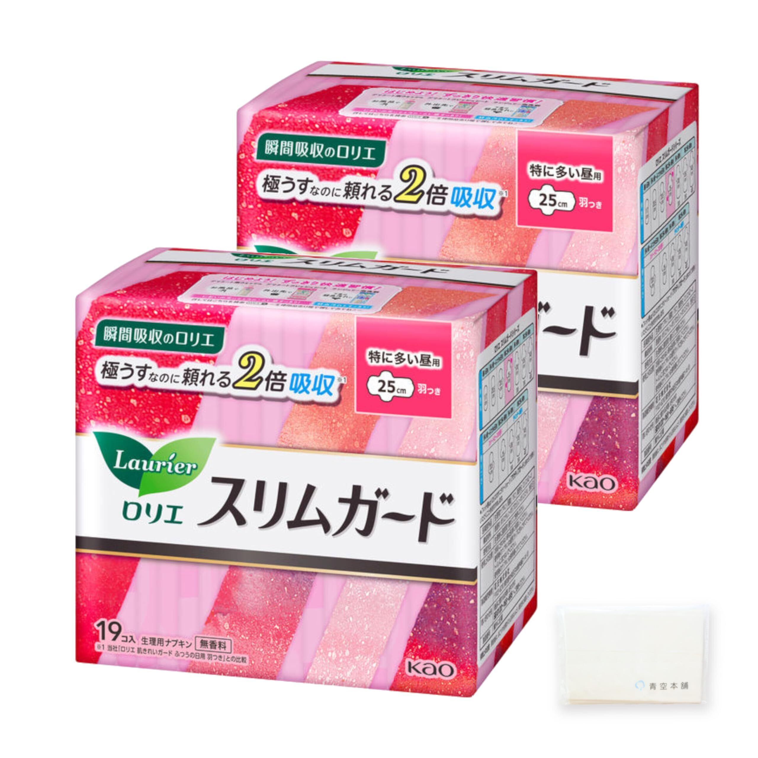 ロリエ スリムガード 特に多い昼用 羽つき 25cm (19個入*2袋セット) オリジナルティッシュ付 まとめ買い