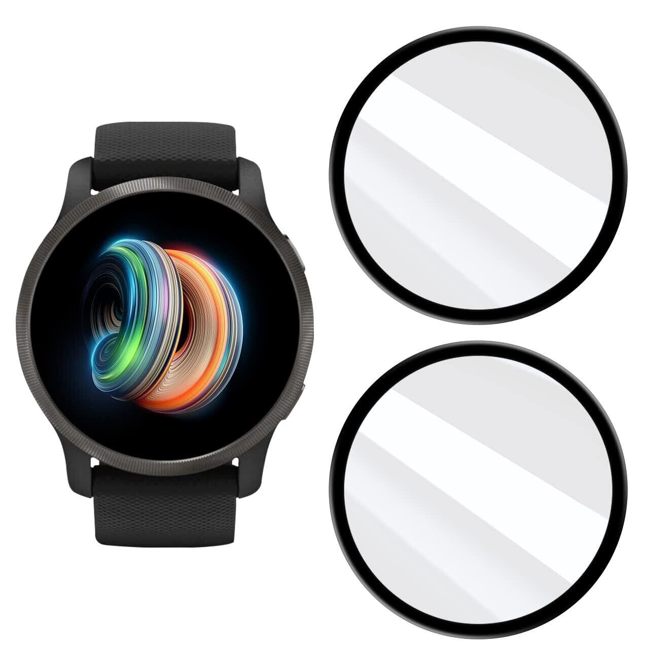 Garmin Venu 2 フィルム 【2枚セット】対応 Garmin Venu 2 用の ガラスフィルム 強化ガラスフィルム ガーミン Venu 2 フィルム 液晶 Venu2 保護フィルム ケース カバー 硬度9H 日本旭硝子素材AGC 超薄0.26mm 2.5Dラウンドエッジ加工 、耐衝撃 、高透過率 、気泡ゼロ 、撥水撥油 、 自動吸着、指紋防止 飛散防止