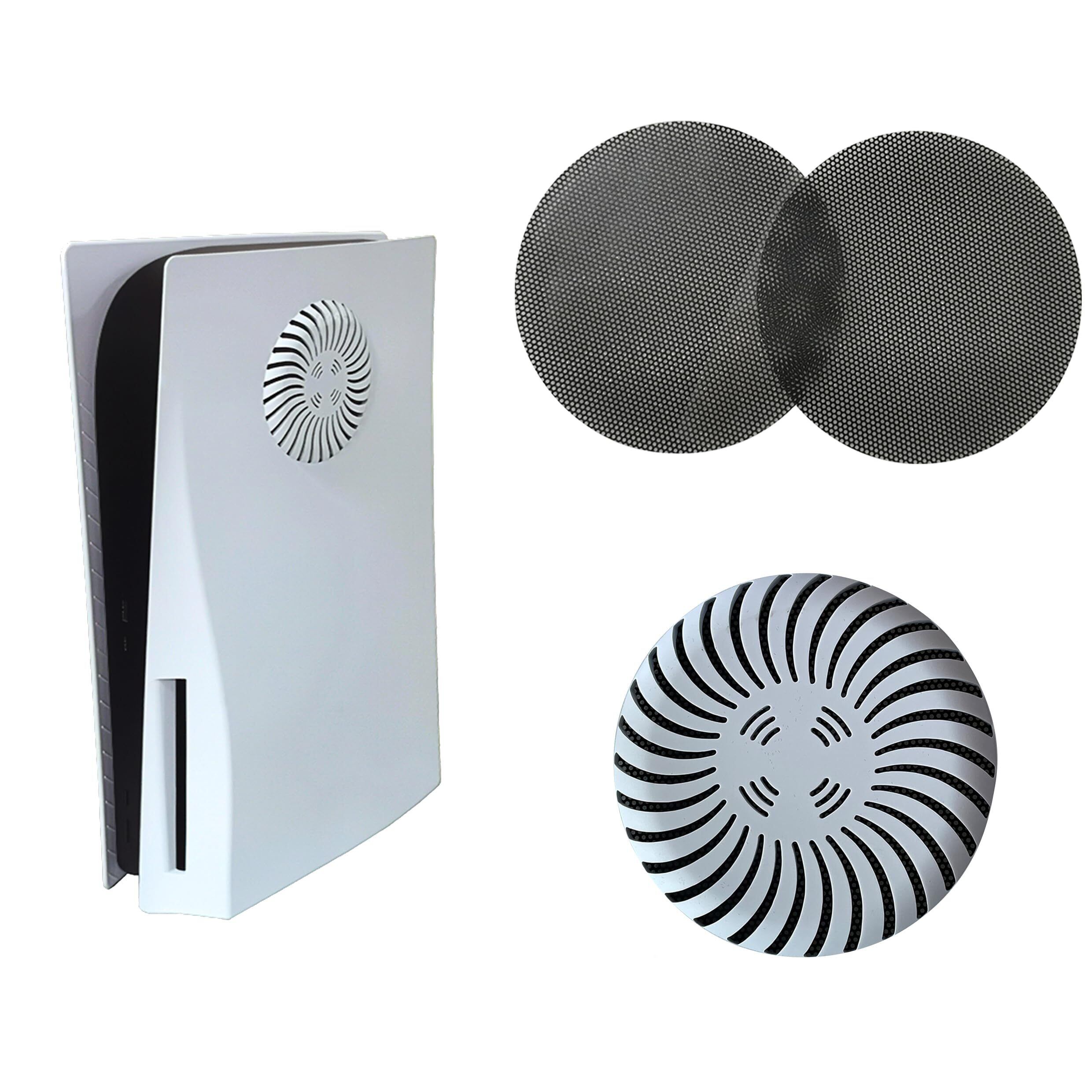 PS5/PS5 Slim ファンカバー 高密度ナイロンメッシュ防塵ネット ほこり防止 冷却効率保持 通気性設計 取り外し簡単 ブラック (2枚組)` (ps5)