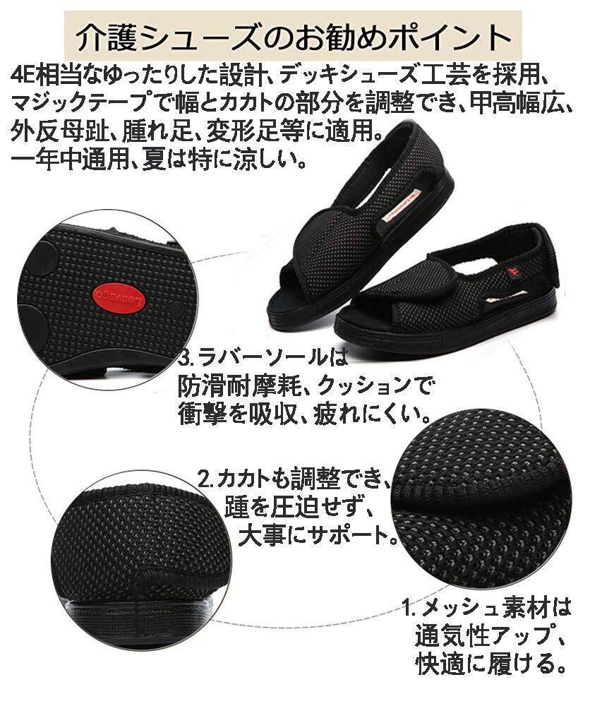 [Eagsouni] 介護サンダル 介護シューズ レディース メンズ マジックテープ 高齢者用 リハビリ靴 シニアシューズ 甲高 幅広 老人靴 4E 滑り止め