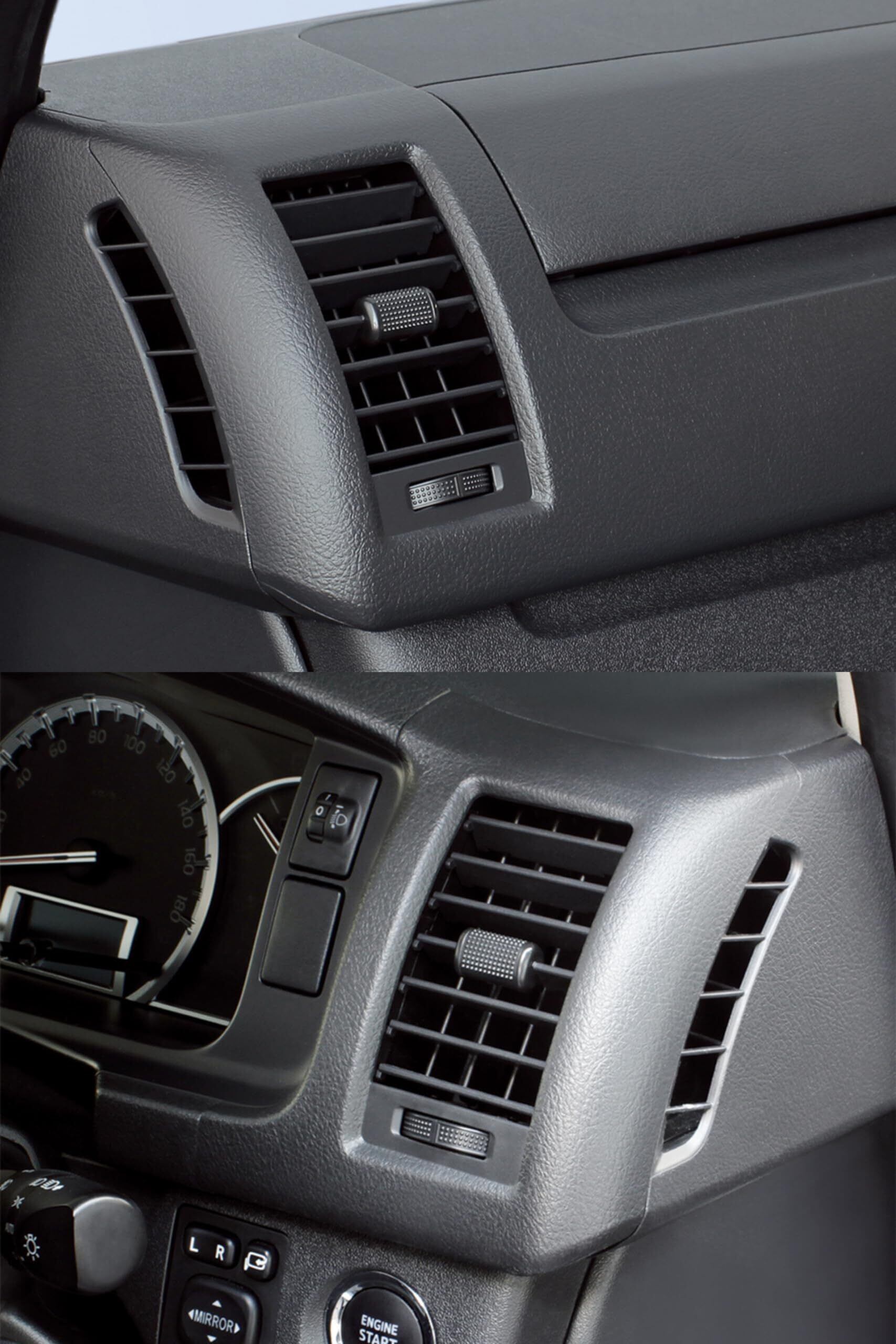 200系ハイエース バン/ワゴン/コミューター(2013年12月[4型]〜2021年2月現在[6型])の右ハンドル車専用です。専用設計で、エアコン送風口パネルにピッタリフィットします。