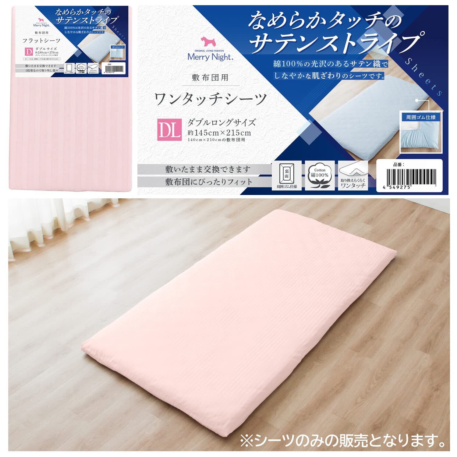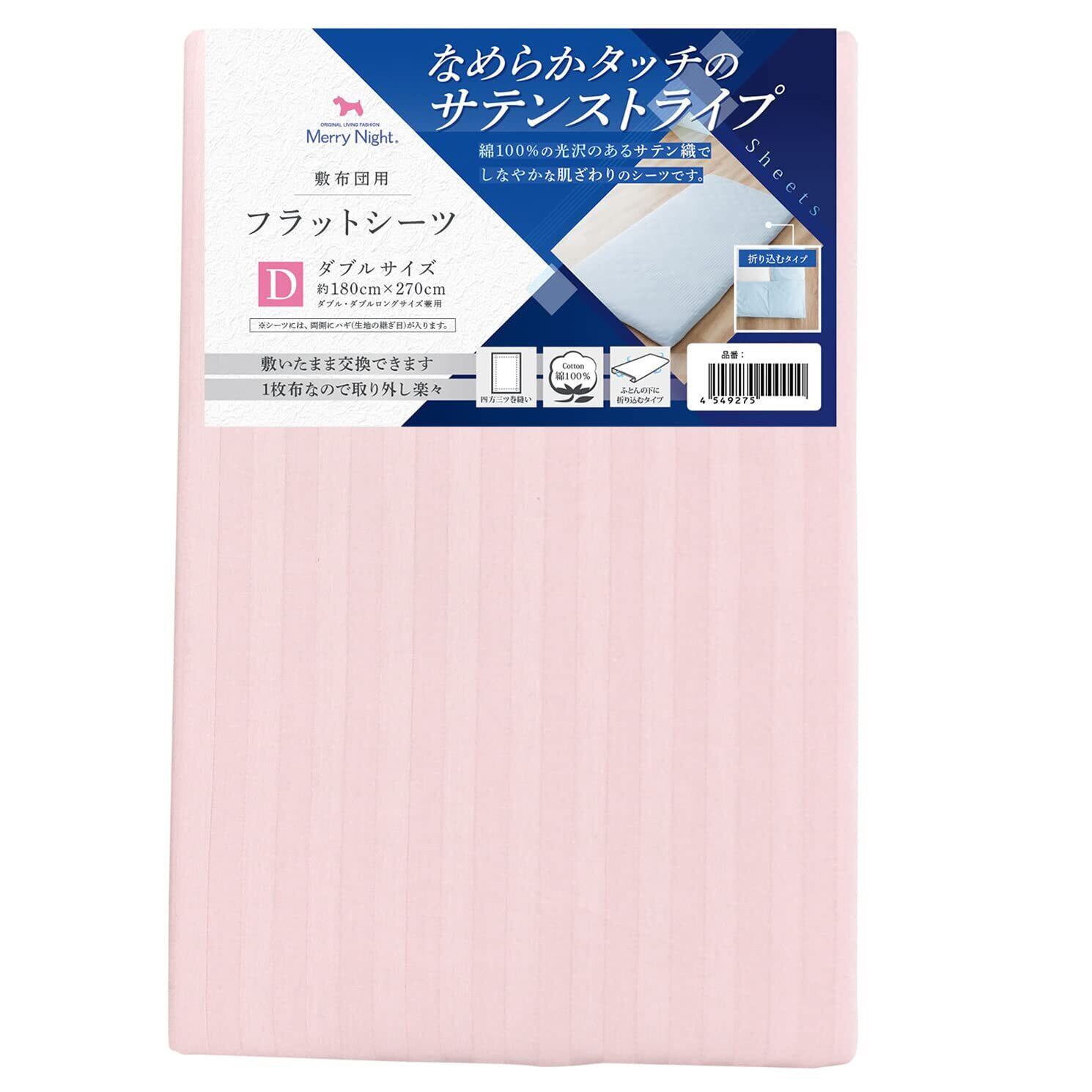 メリーナイト シーツ フラットシーツ サテンストライプ ピンク 敷布団用 ダブル 約180×270cm 綿100% 上品な光沢感 ホテルライク しなやかな肌ざわり 洗える オールシーズン 373002-16