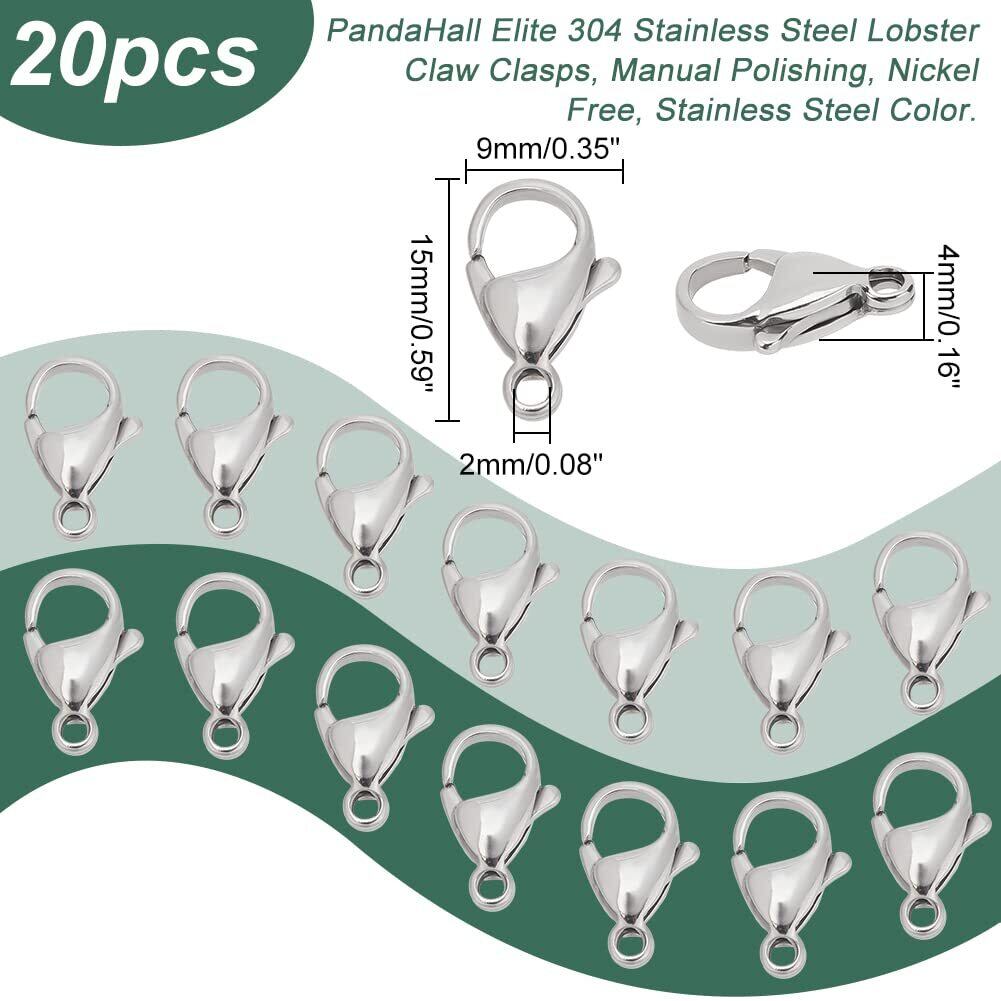 PH PandaHall 20個 304 ステンレス カニカン 15x9x4mm 金属 ロブスター クラスプ 留め具 エンドパーツ 接続金具 ジュエリー用 パーツ DIY用