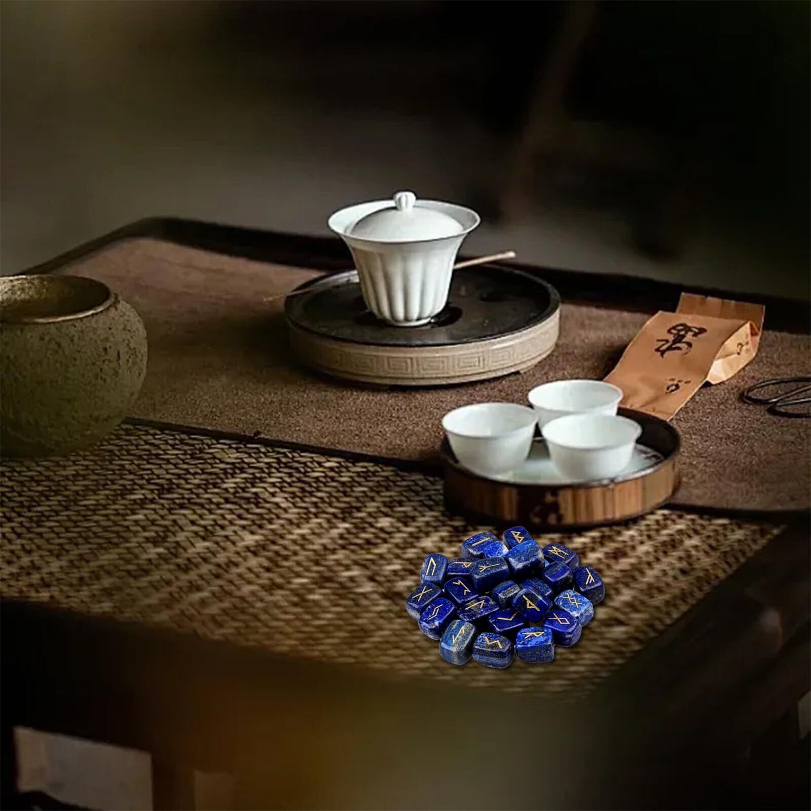 ラピスラズリルーンは美しく刻まれた24個のフラットセットです。
