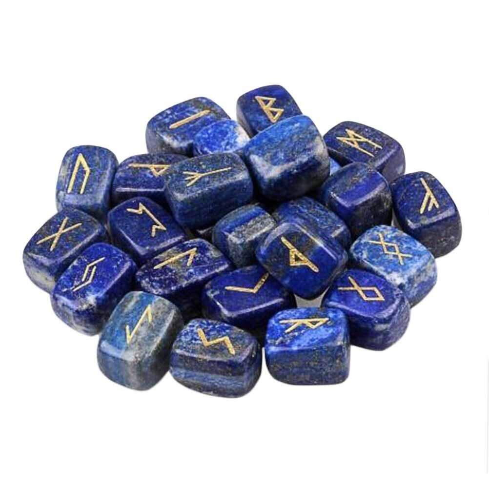 (イスイ)YISHUI 25個入り 天然 刻まれた チャクラ ラピスラズリ ルーン 石セット 宝石 W3558