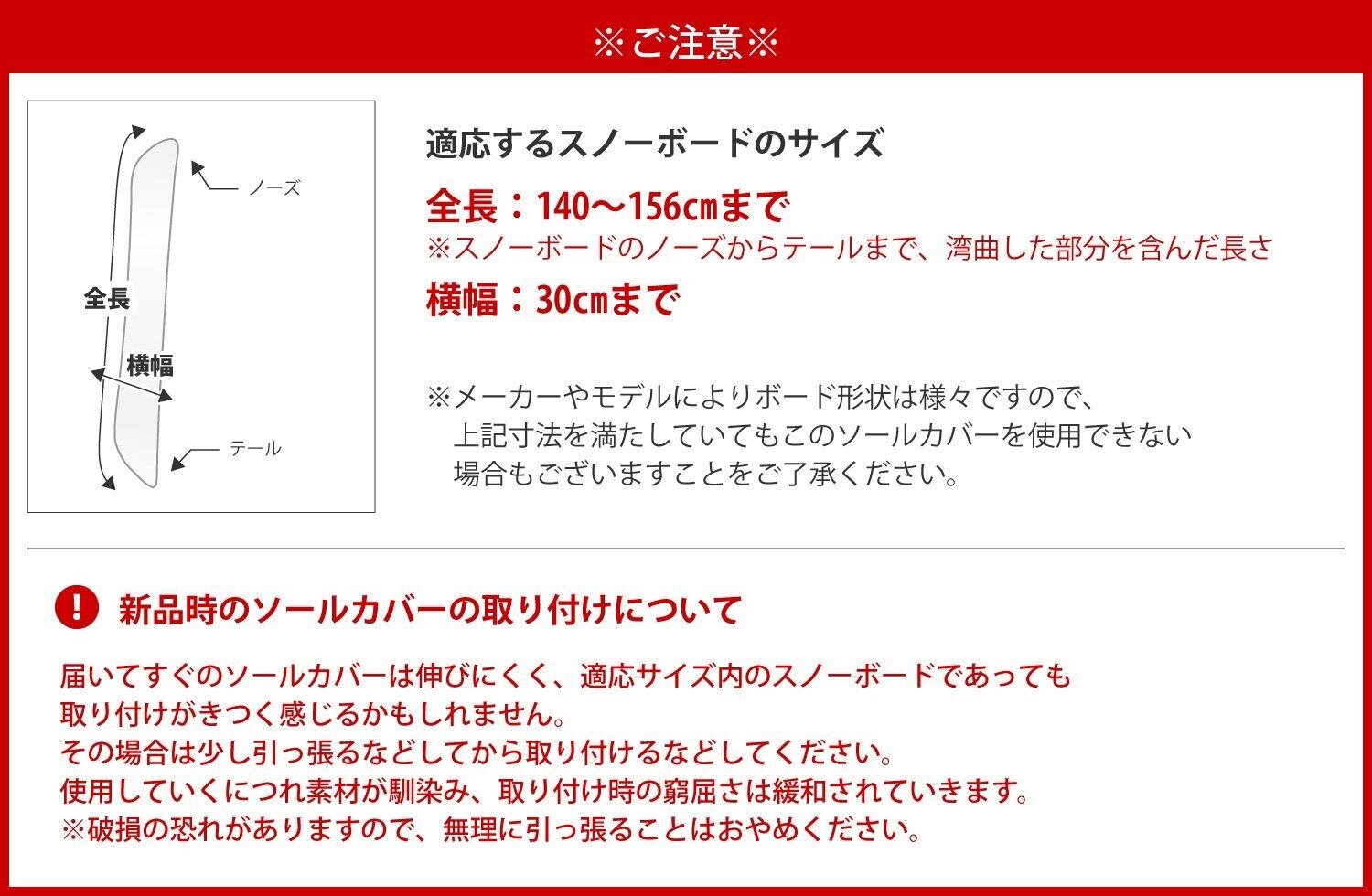 新品のソールカバーは伸びにくく、適応サイズ内であっても取り付けがきつく感じる場合がございます。