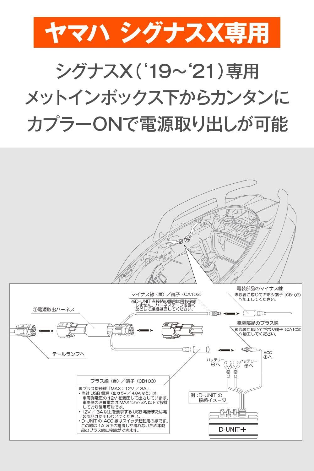 デイトナ(Daytona) バイク用 電源取り出しハーネス シグナスX(19-21) メットインボックス下専用 かんたん電源取出しハーネス 29919 ブラック