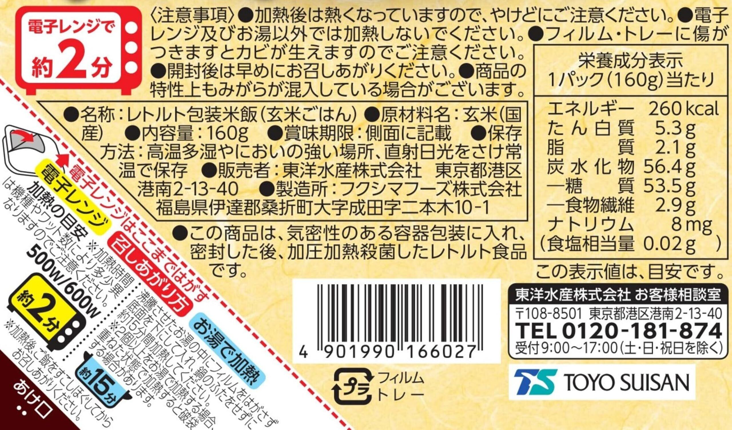 【商品詳細】内容量:160g×10個 / 主な原材料:玄米 / 原材料の主な原産国:日本 / 最終加工地:日本 / メーカー名:東洋水産株式会社