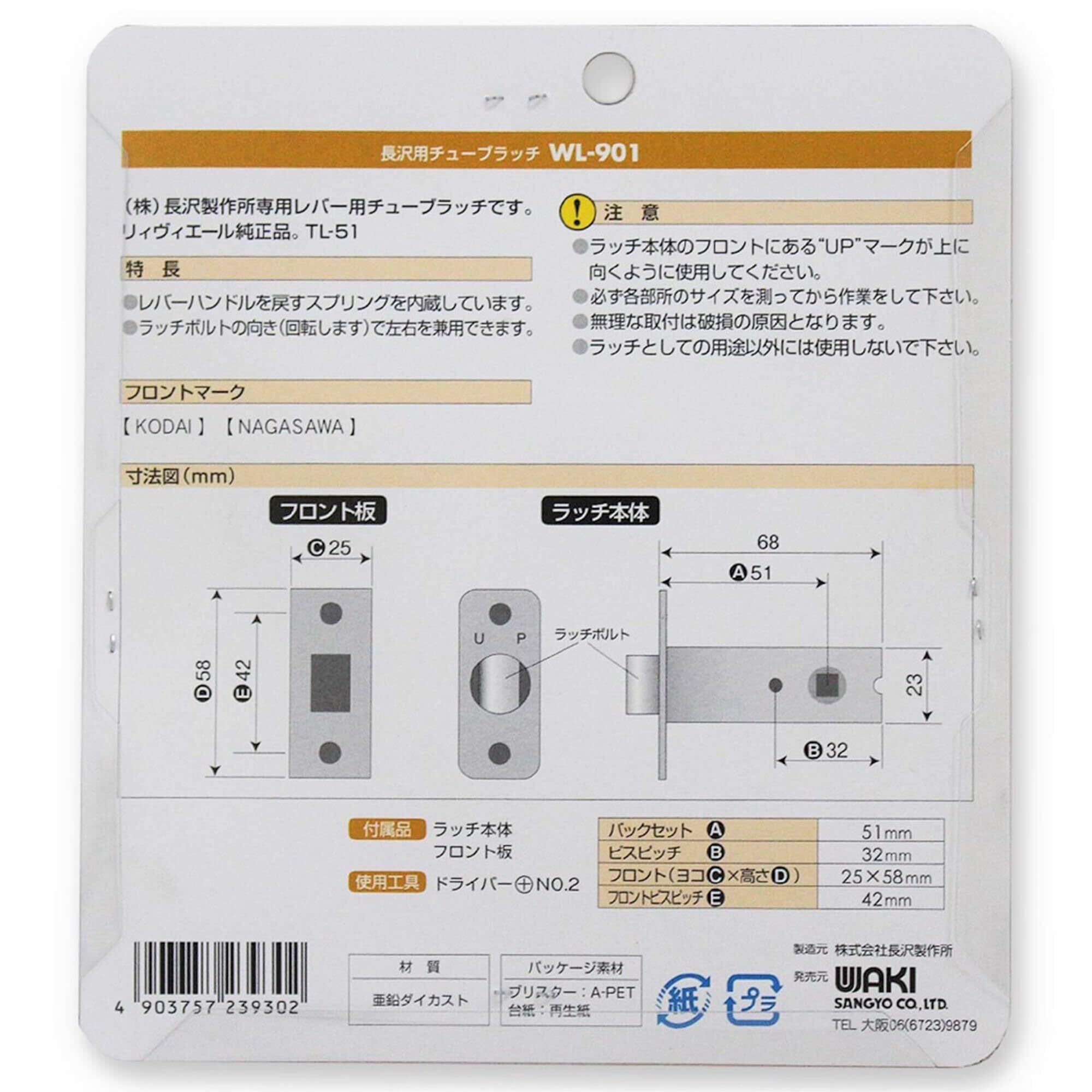 和気産業(Waki Sangyo) 長沢製作所 チューブラッチ Aタイプ BS51 TL-51 扉 金具 ドア WL-901