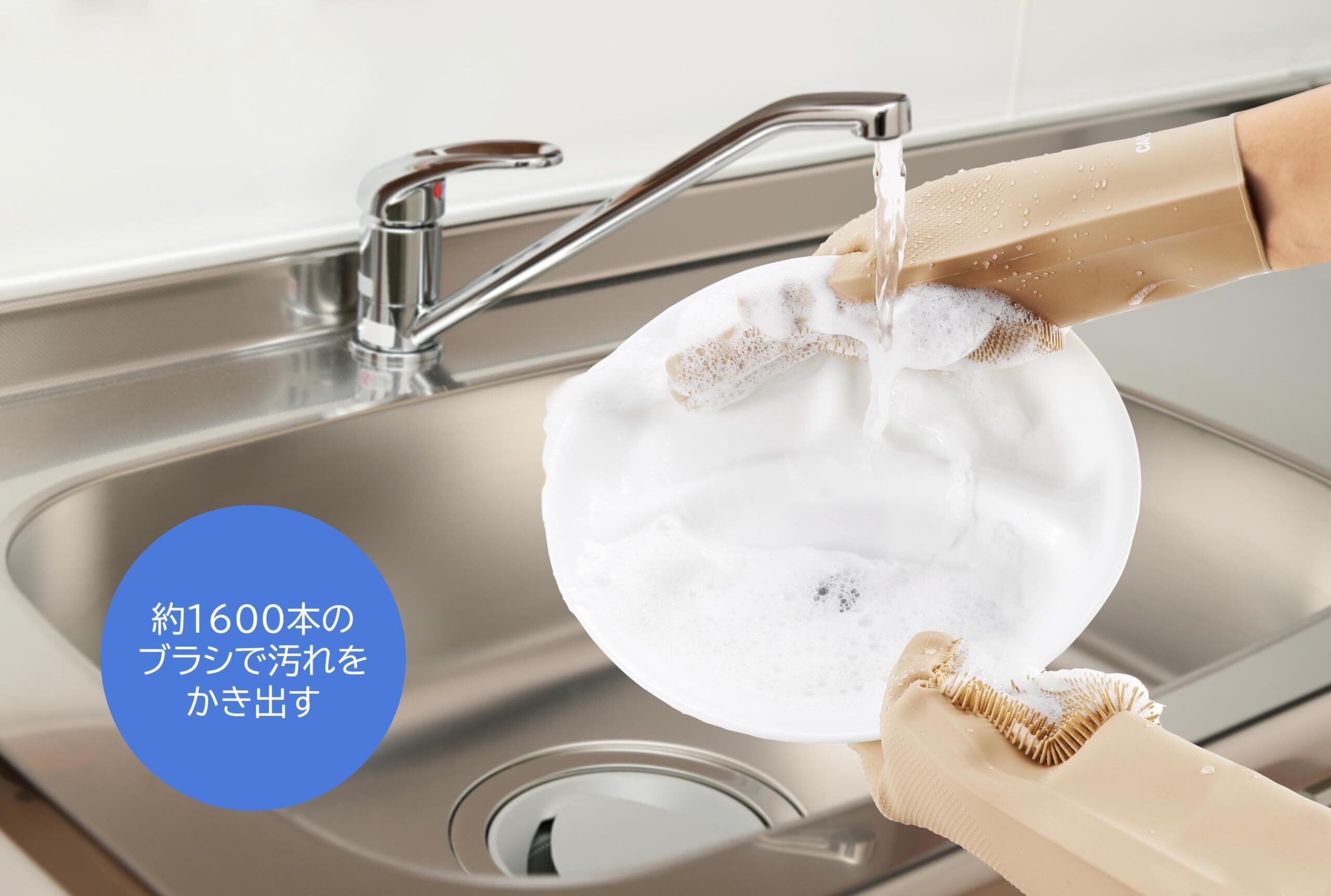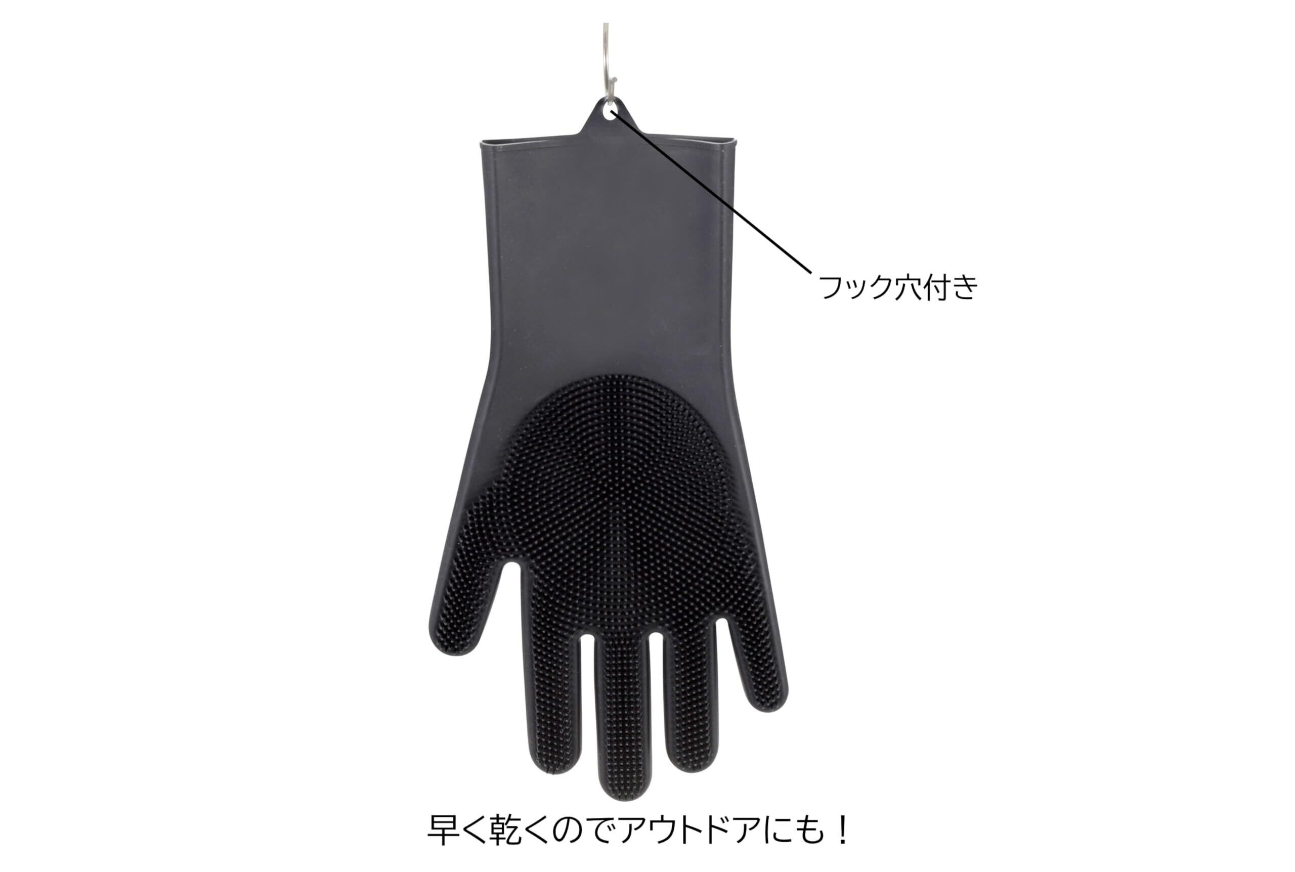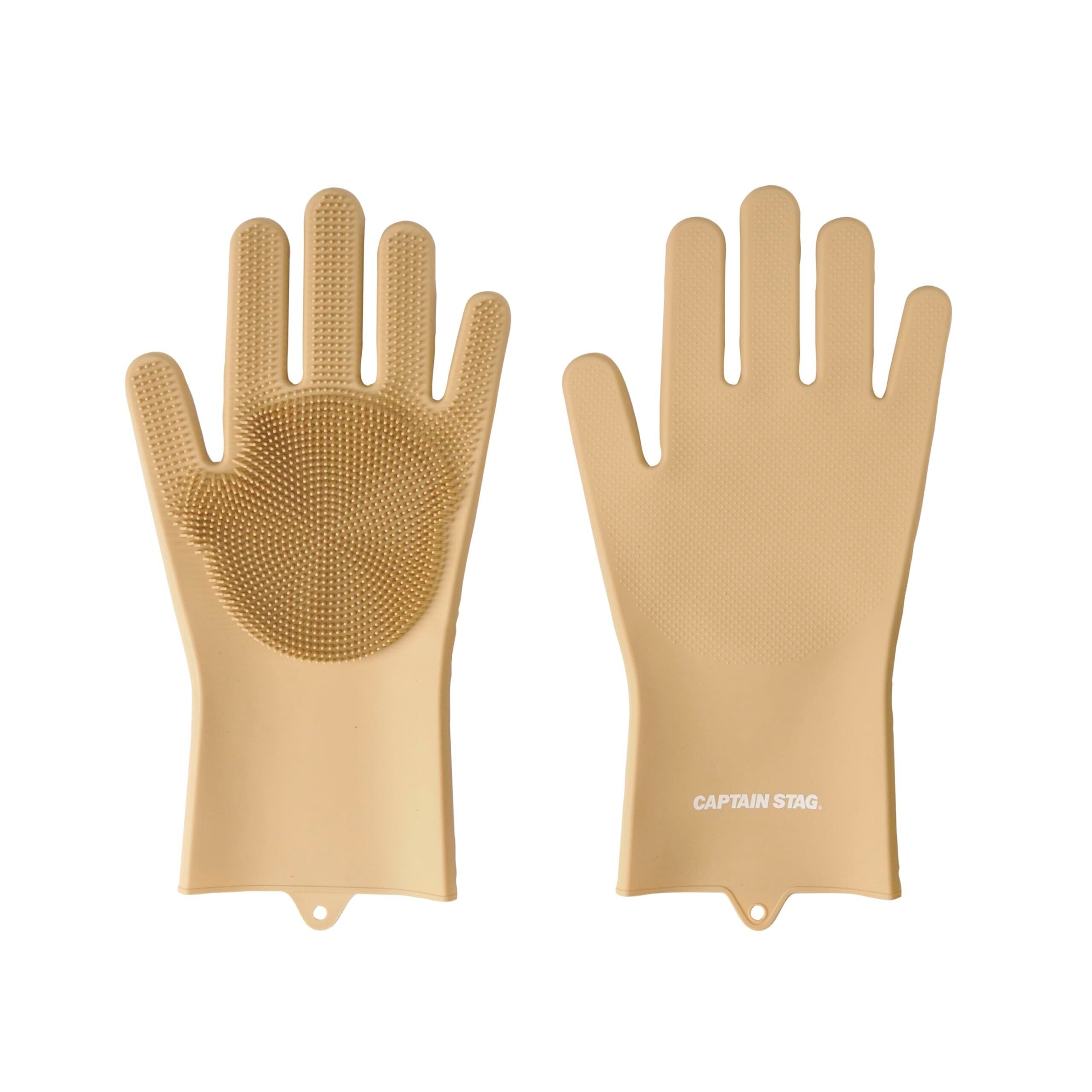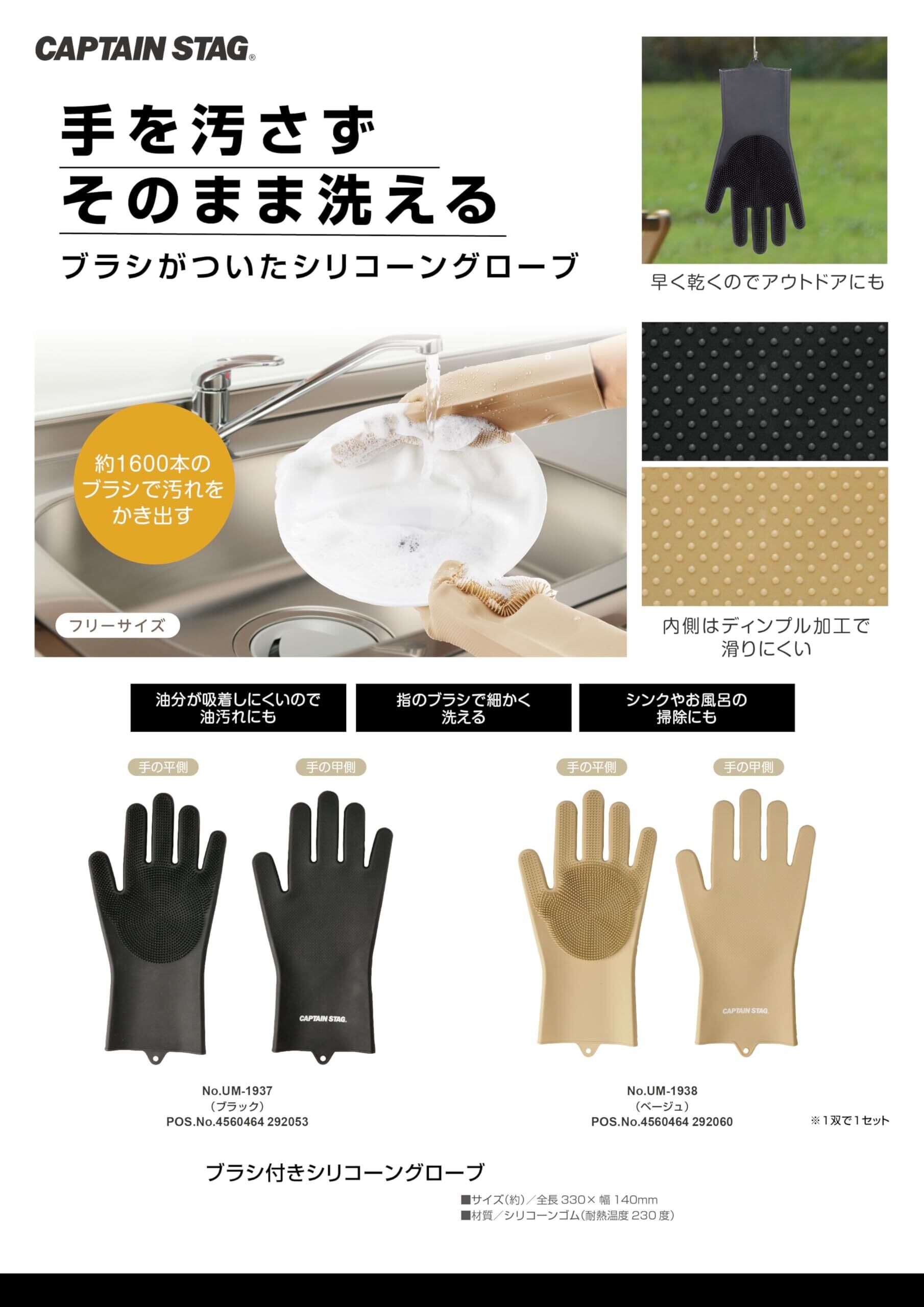 [キャプテンスタッグ] アウトドア 手袋 ゴム手袋 キッチングローブ ブラシ付き シリコーングローブ ロング フリーサイズ ブラック/ベージュ UM-1937/UM-1938