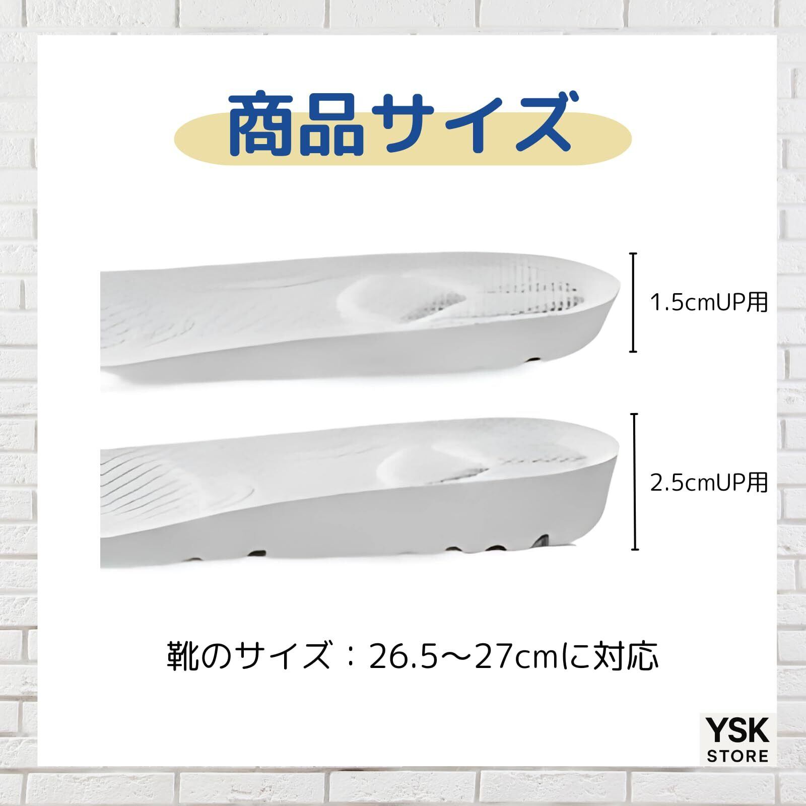 YSKSTORE シークレットインソール 身長アップ 中敷き 衝撃吸収 26.5-27cm 男女兼用 (1.5cm)