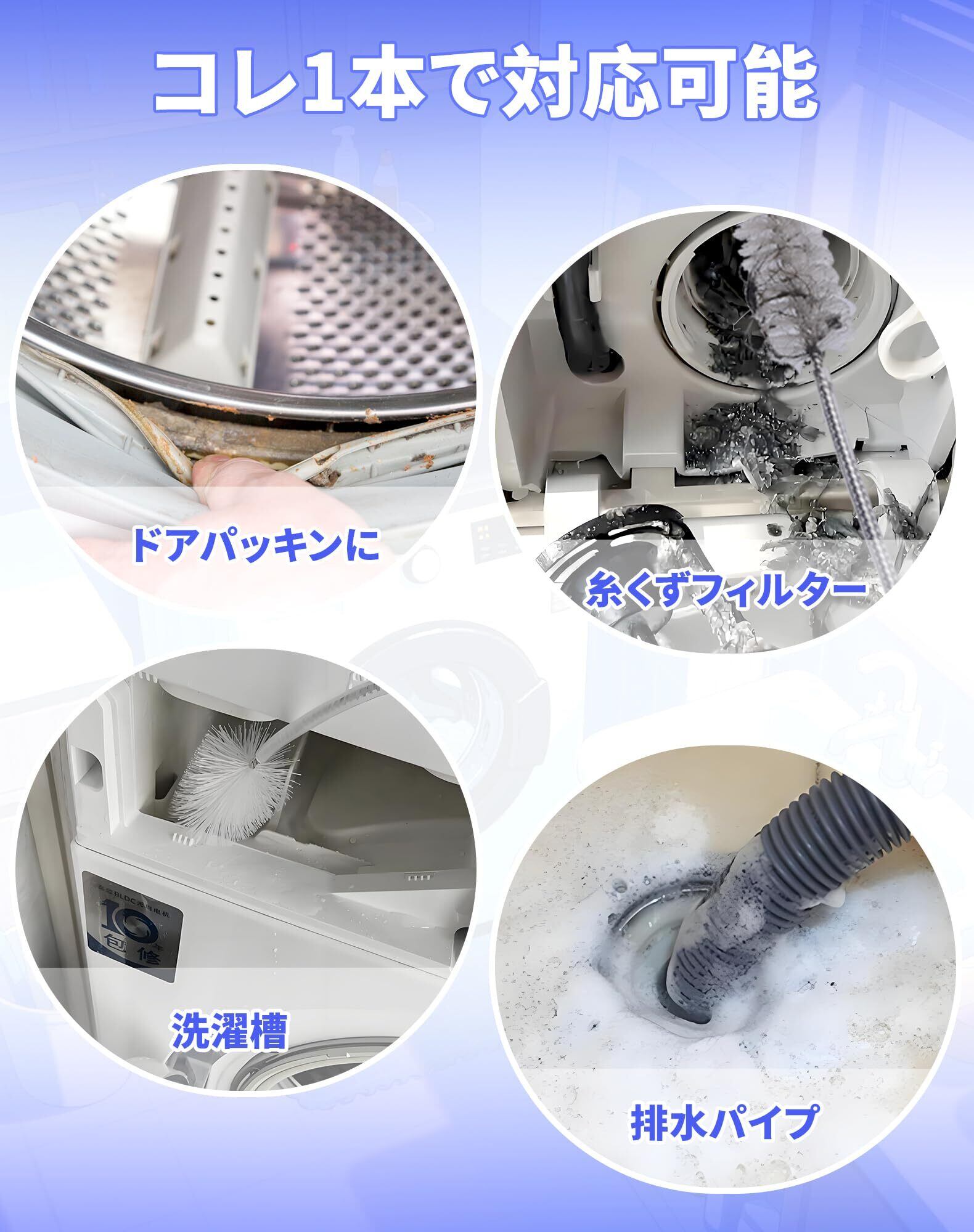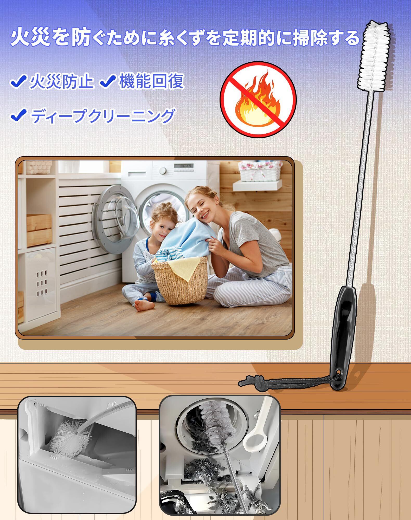 【多用途にも使える】このドラム式洗濯機 ブラシ一本だけで、乾燥経路からドアパッキン、糸くずフィルター、乾燥フィルターや排水パイプまで掃除でき、洗濯機に限らず、手の届かない細かな場所で、暖炉用清掃・メンテナンス用品、これ1本でさまざまな部分の掃除が可能です。狭い配管やコーヒーマシン・暖炉用清掃・メンテナンス用品、洗濯機以外の手の届きにくい場所でも活躍し、とても便利なアイテムです。