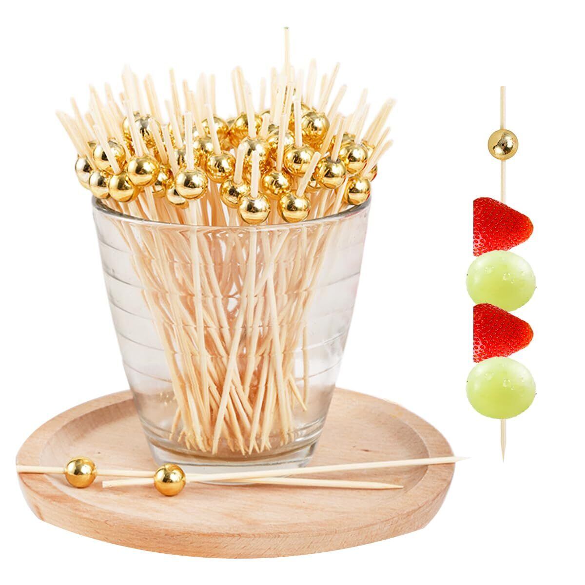 カクテルピック 約190本入り おしゃれ 竹 爪楊枝 カクテルピン フルーツピック 使い捨て ゴールドビーズ 果物 オードブルピン ピンチョス ピック ケーキトッパー カクテル 飾り 自宅用 業務用 (ゴールドビーズ)