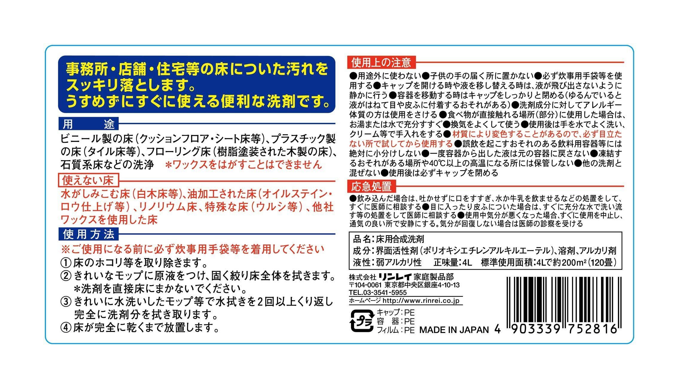 リンレイオール床クリーナー 薄めずそのまま使用 4L