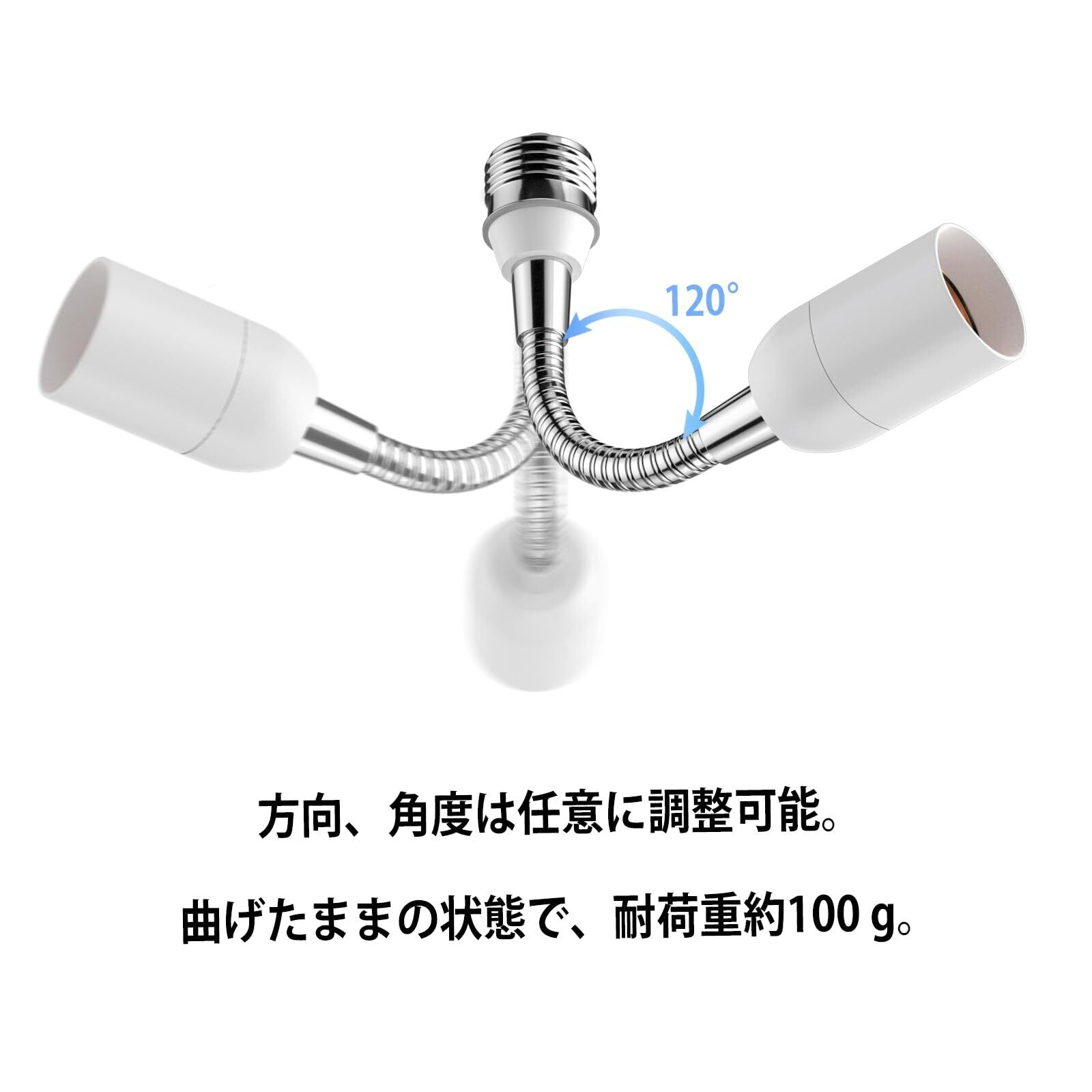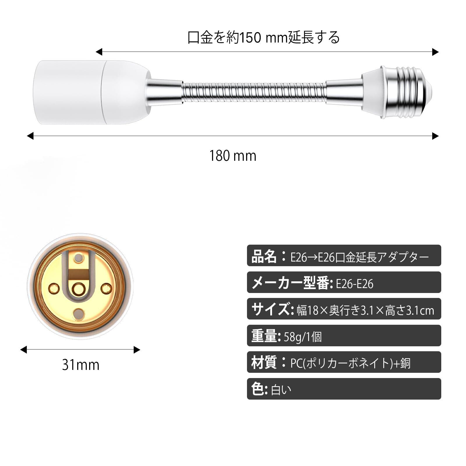 2、E26→E26 口金延長アダプター。E26口金がソケットに届かない場合に、延長するための照明器具。曲げたままの状態で、耐荷重約100 g。