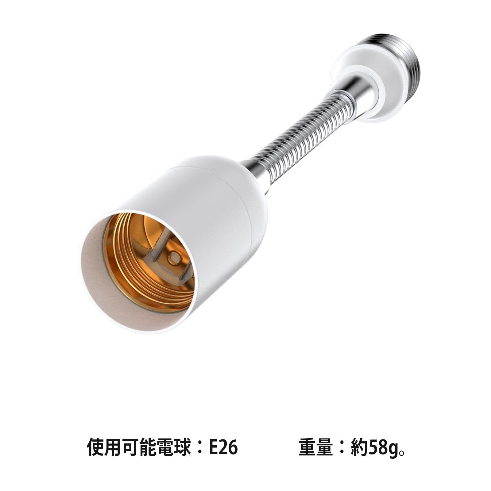 E26→E26口金延長アダプター,電気 ソケット,電球ソケットE26口金,E26→E26 口金延長アダプター。E26口金がソケットに届かない場合に、延長するための照明器具。曲げたままの状態で、耐荷重約100 g。