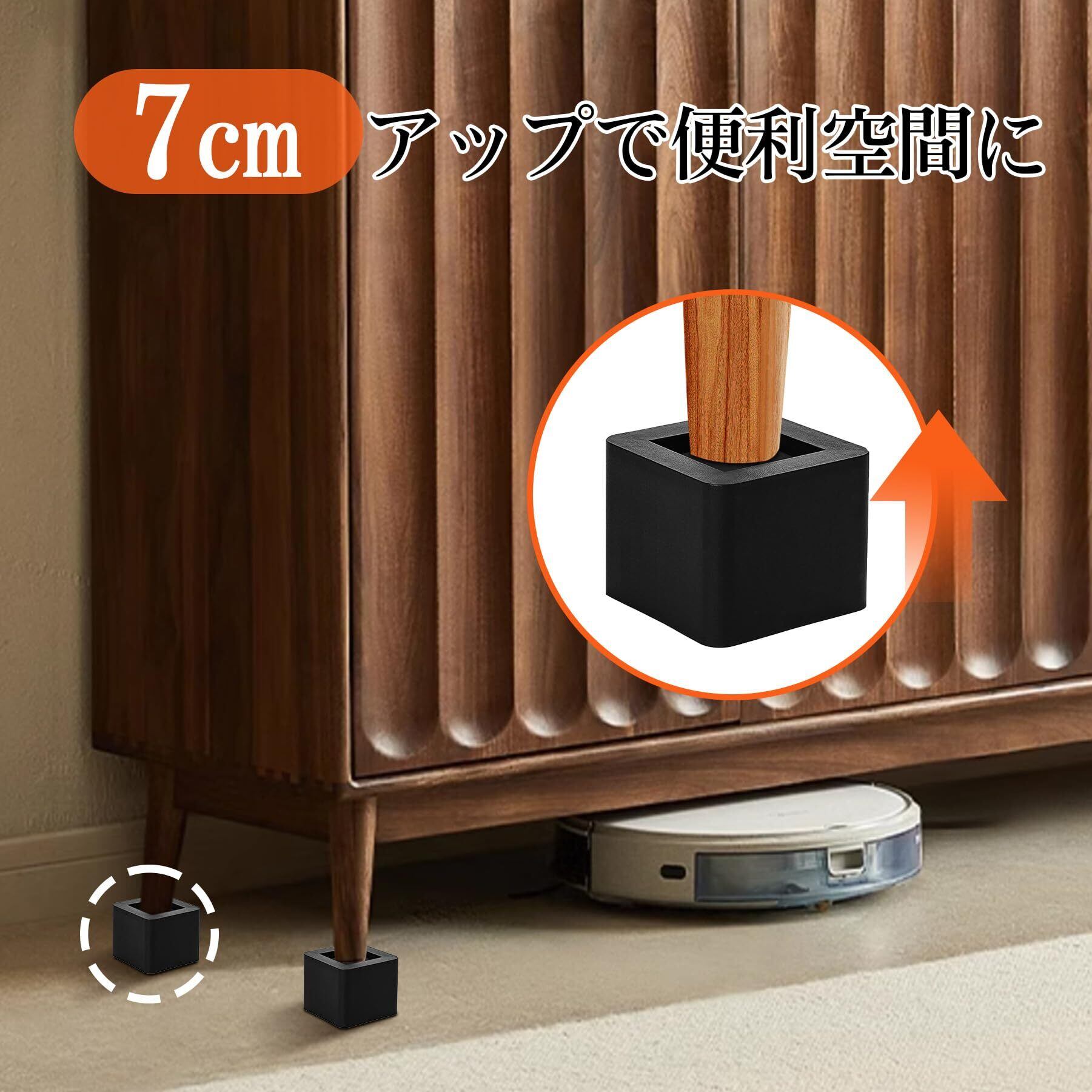 【数量限定】テーブル・ベッドの高さ調節が簡単にできる ベッドの高さをあげる足 4個セット 高さを上げる 高さ調節脚 こたつ 継足し 継ぎ足 テーブル脚台 高さ調整 暖房器具 (耐荷重1000kg) 正方形 ブラック 高さ7cm | gsmshop