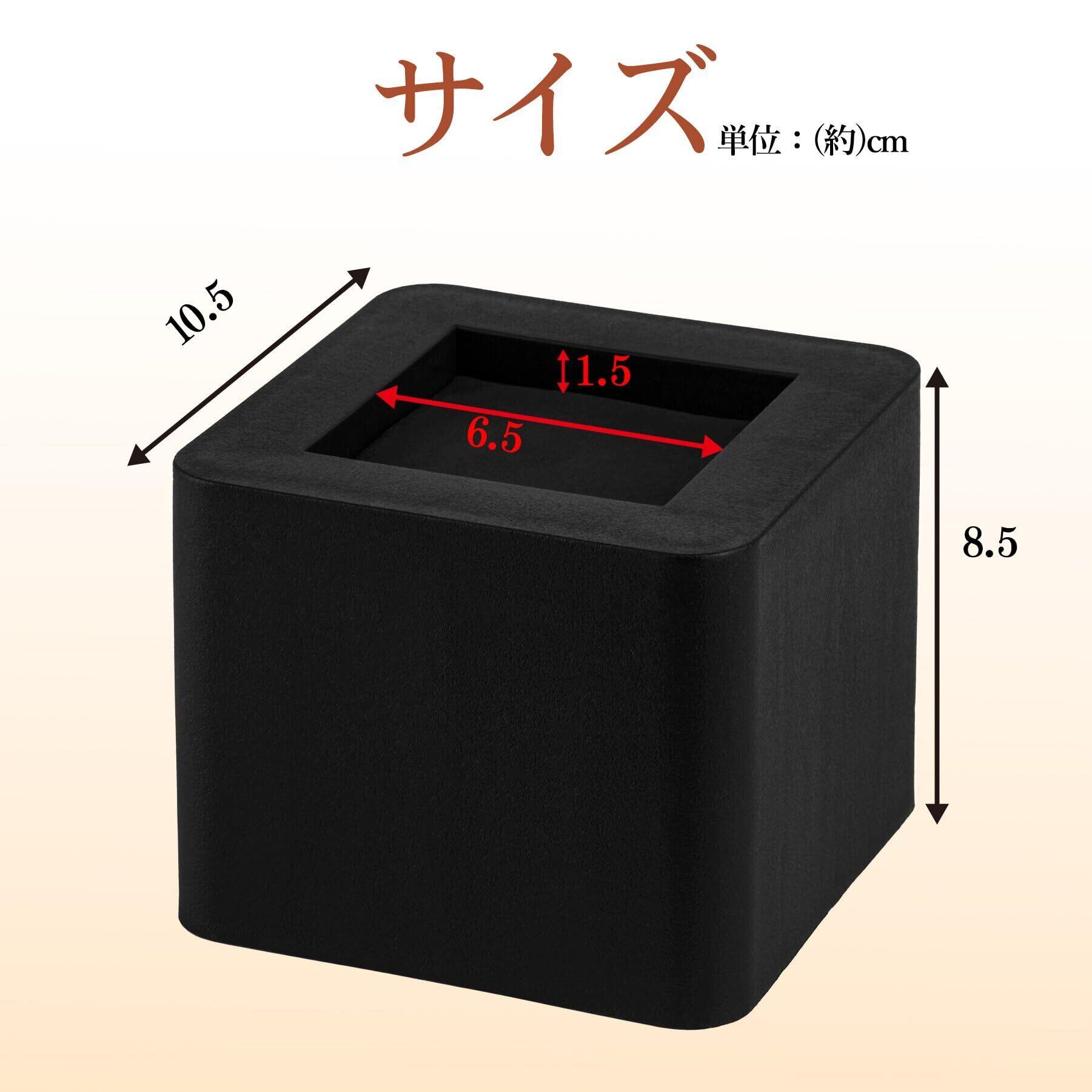 テーブル・ベッドの高さ調節が簡単にできる ベッドの高さをあげる足 4個セット 高さを上げる 高さ調節脚 こたつ 継足し 継ぎ足 テーブル脚台 高さ調整 暖房器具 (耐荷重1000kg) 正方形 ブラック 高さ7cm
