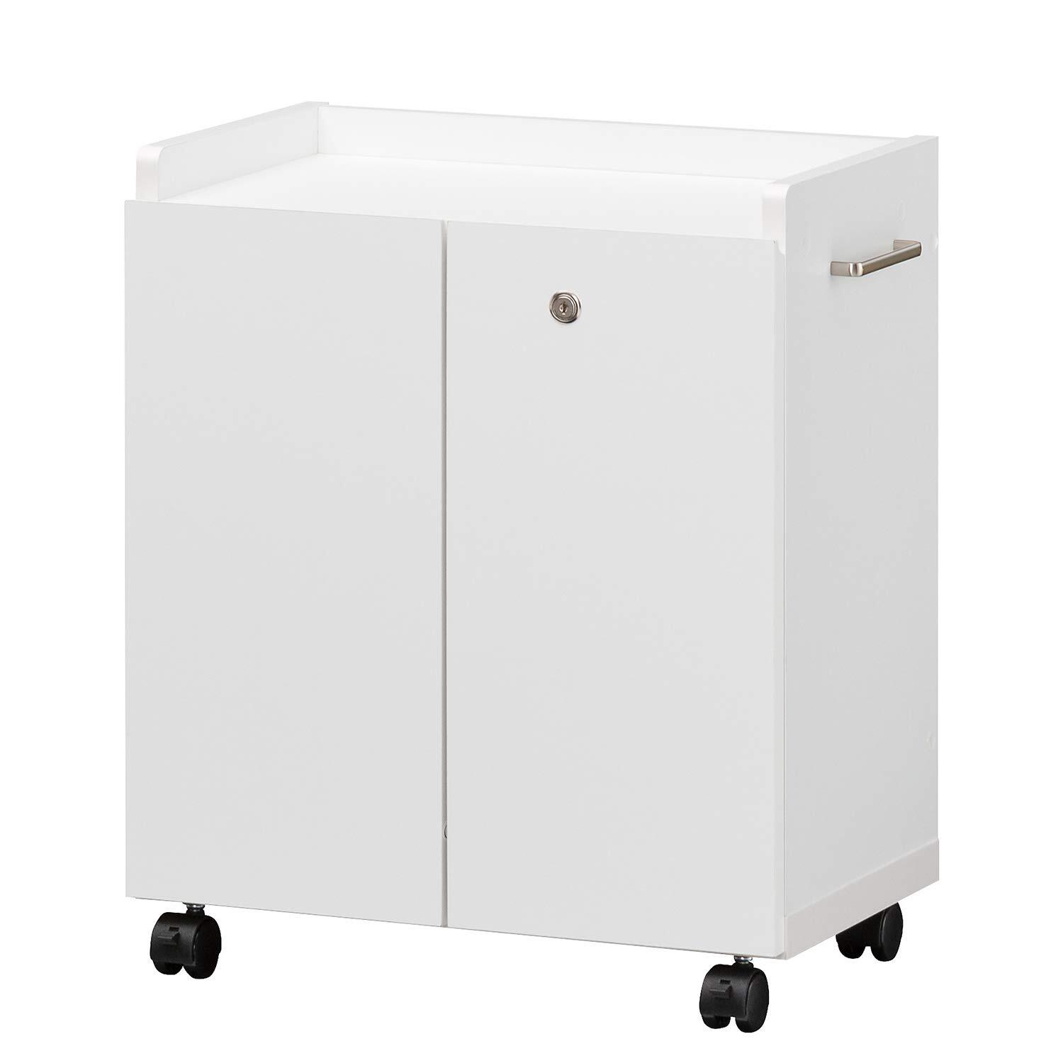白井産業 デスクサイドに便利 サイドワゴン ラック キャスター付 扉 鍵付き デスク下収納 背面化粧 木製 白 幅50 高さ59.2 奥行31cm OF2-6050DC オフィスコ2