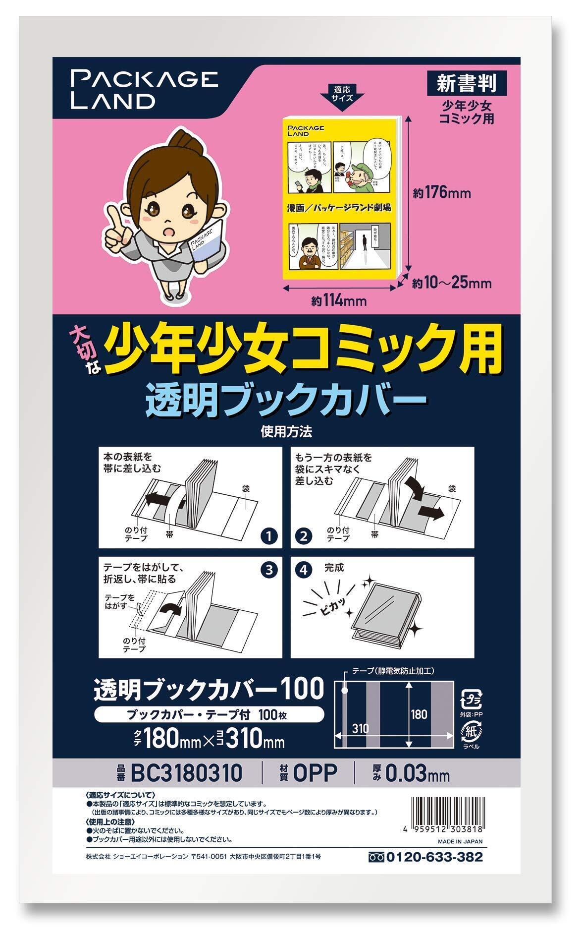 【パッケージランド】大切な少年少女コミック用透明ブックカバー/100枚 OP30 180×310