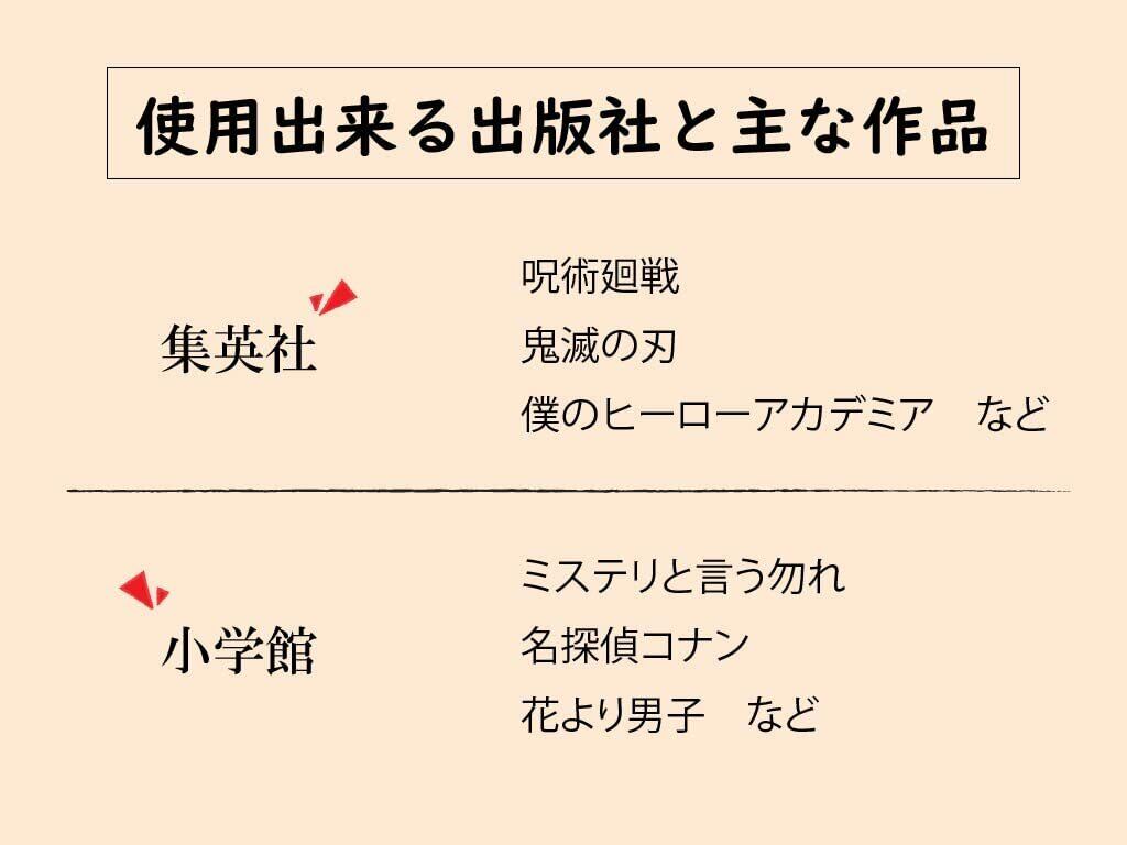 主に、少年ジャンプ(集英社)・少年サンデー(小学館)・ちゃお(小学館)・りぼん(集英社)・マーガレット(集英社)・花とゆめ(白泉社)・Lala(白泉社)のコミックに適応しています。※講談社、秋田書店のコミックは少し高さが低めなので、適応できますが、フィット感をお求めのお客様には「少し高さが低めの少年少女コミック用(BC3176310)」のご購入をお薦めします。