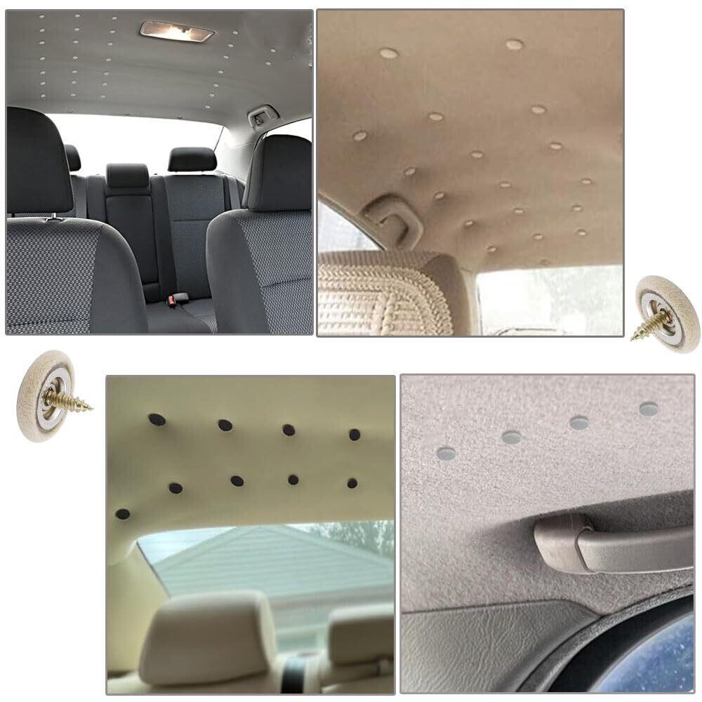 車の天井修理キット 60個セット 修理リベット 修理ボタン リテーナー デザイン 天井布固定ネジ キャップ屋根修理 取り付けツール付き 自動車 ルーフ ヘッドライナー 収納ボックス付き (ショートウール/オフホワイト)