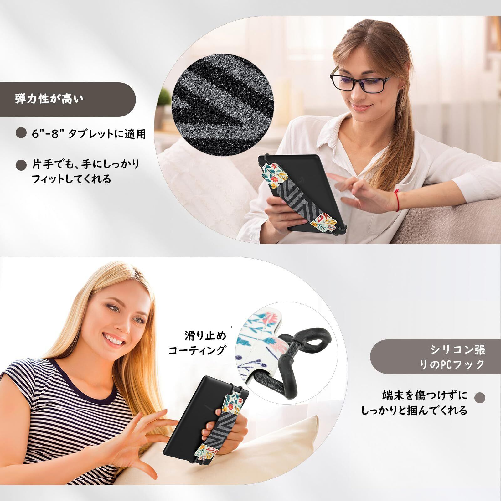 【数量限定】タブレットハンド MoKo 2枚セット タブレットストラップ タブレットゴムバンド 片手持ち タブレットリング Case for 6~8インチデバイス対応 iPad Mini 7/6/5/4/3/2/1世代、kindle paperwhite 2024/2021/2018、Fire7 2022/2019、Fire HD 8 & 8 Plus 2024/2020などに適用 小花 | gsmshop