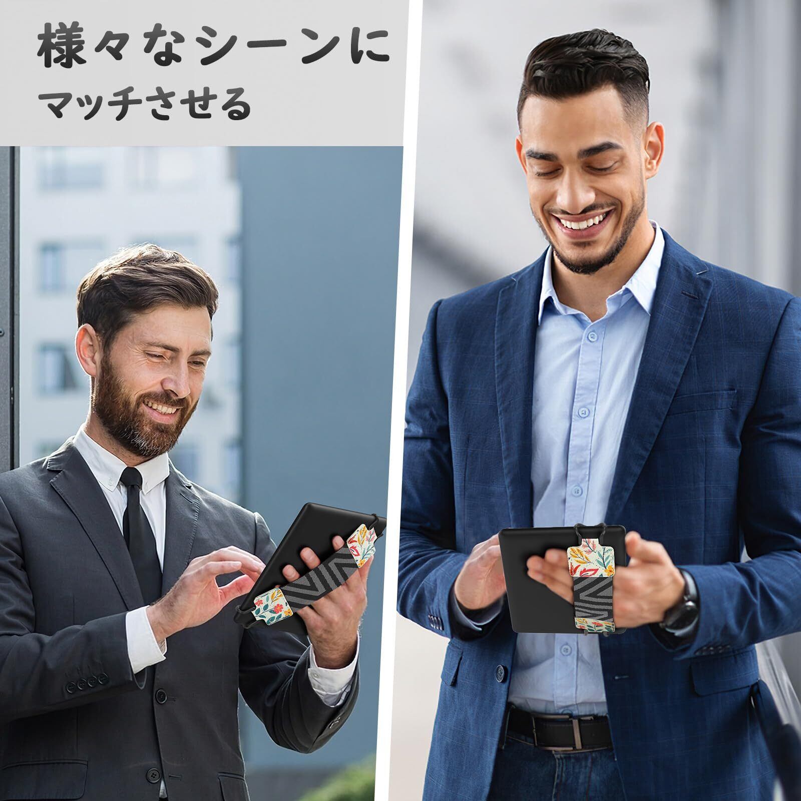 「取り扱い簡単」 端末に引っ掛けて、利き手に関わらず、手を通すだけで全体にホールド感があって、重みを分散させ、同じ端末を今までのない軽く感じさせてくれて、手軽にご利用いただけます。ナナメ対角線方向に使用をおすすめします。