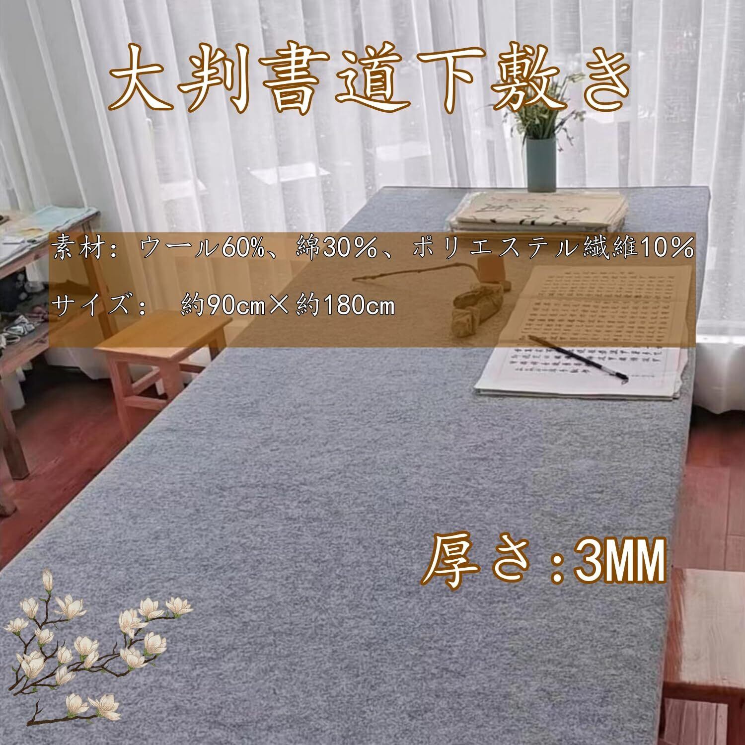 材質 ウール60%、綿30%、ポリエステル繊維10%, 書道 下敷き 全紙用