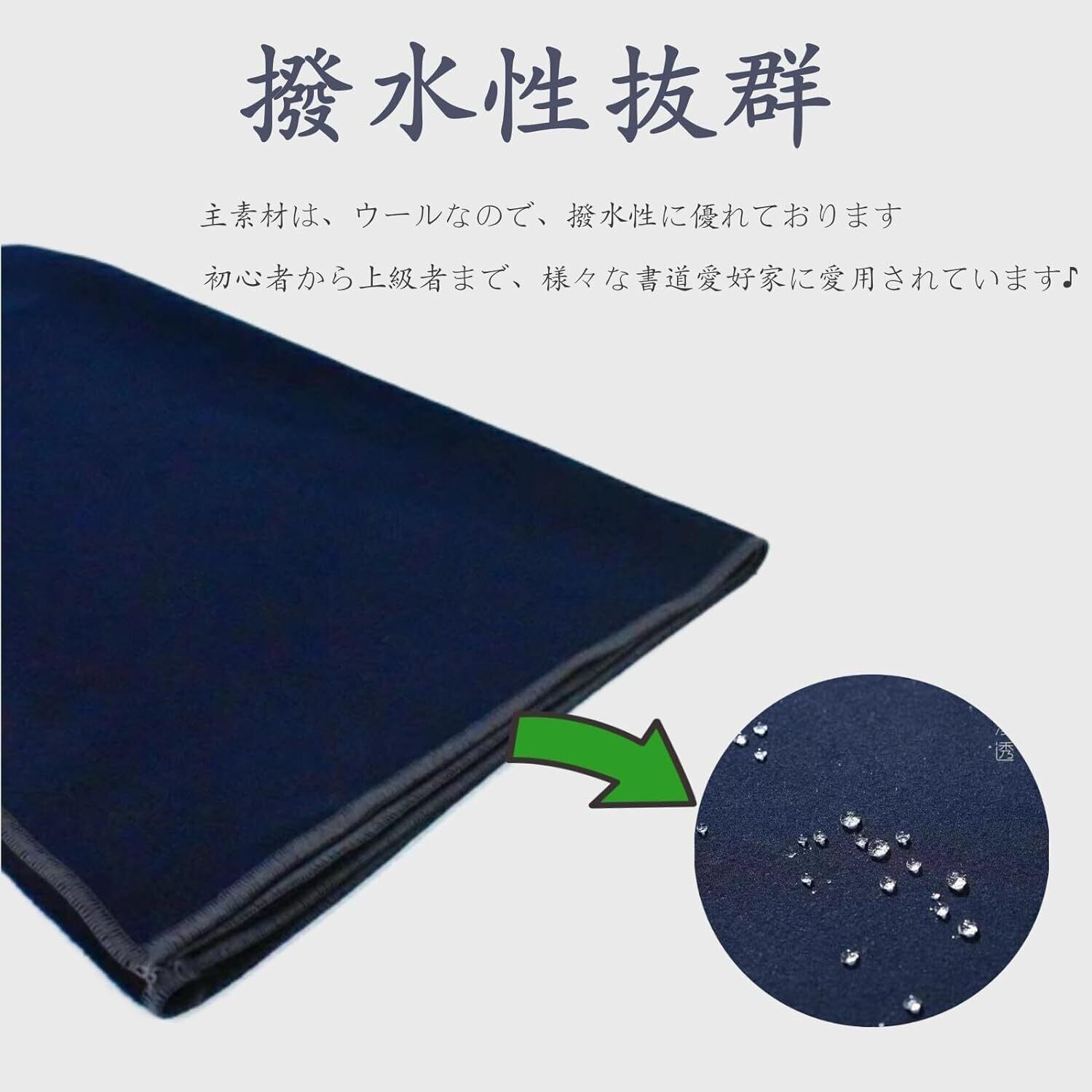 【撥水性抜群】主素材は、ウールなので、撥水性に優れております。初心者から上級者まで、様々な書道愛好家に愛用されています。