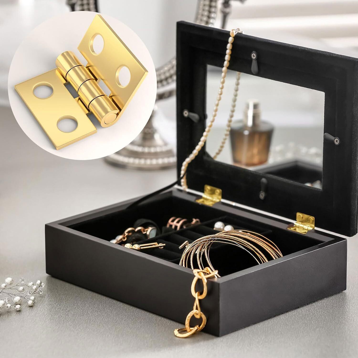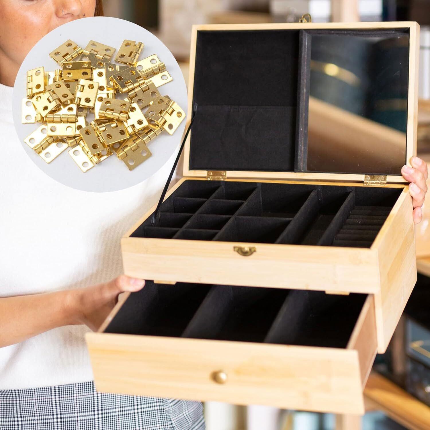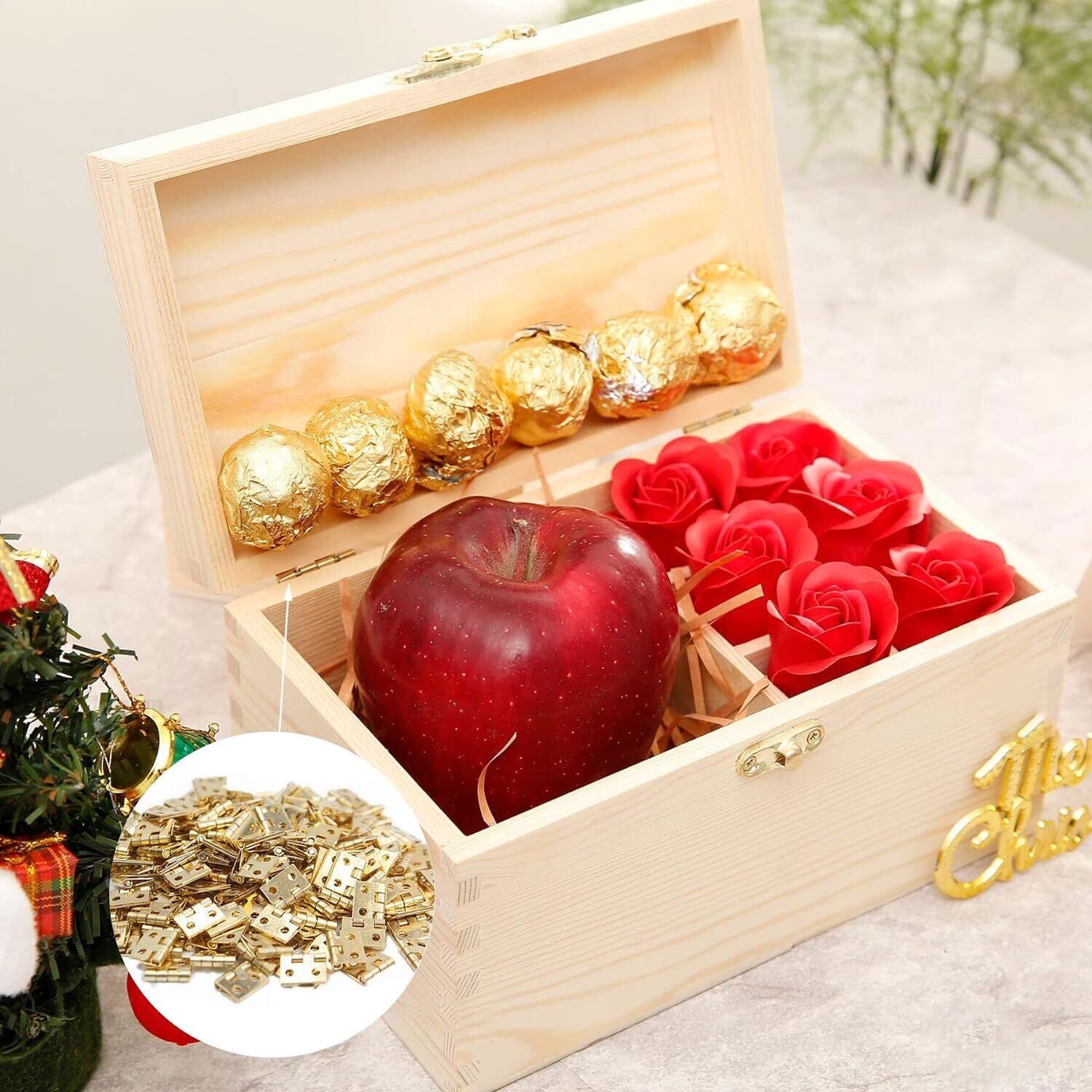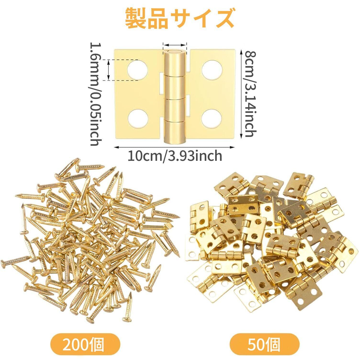 蝶番 ミニ蝶番 8*10mm 50個セット ネジ付き 4穴 木箱用のヒンジ ヒンジ 金具 ドア用金物 手作り パーツ 木工 家具補修 DIYミニチュア (金色)