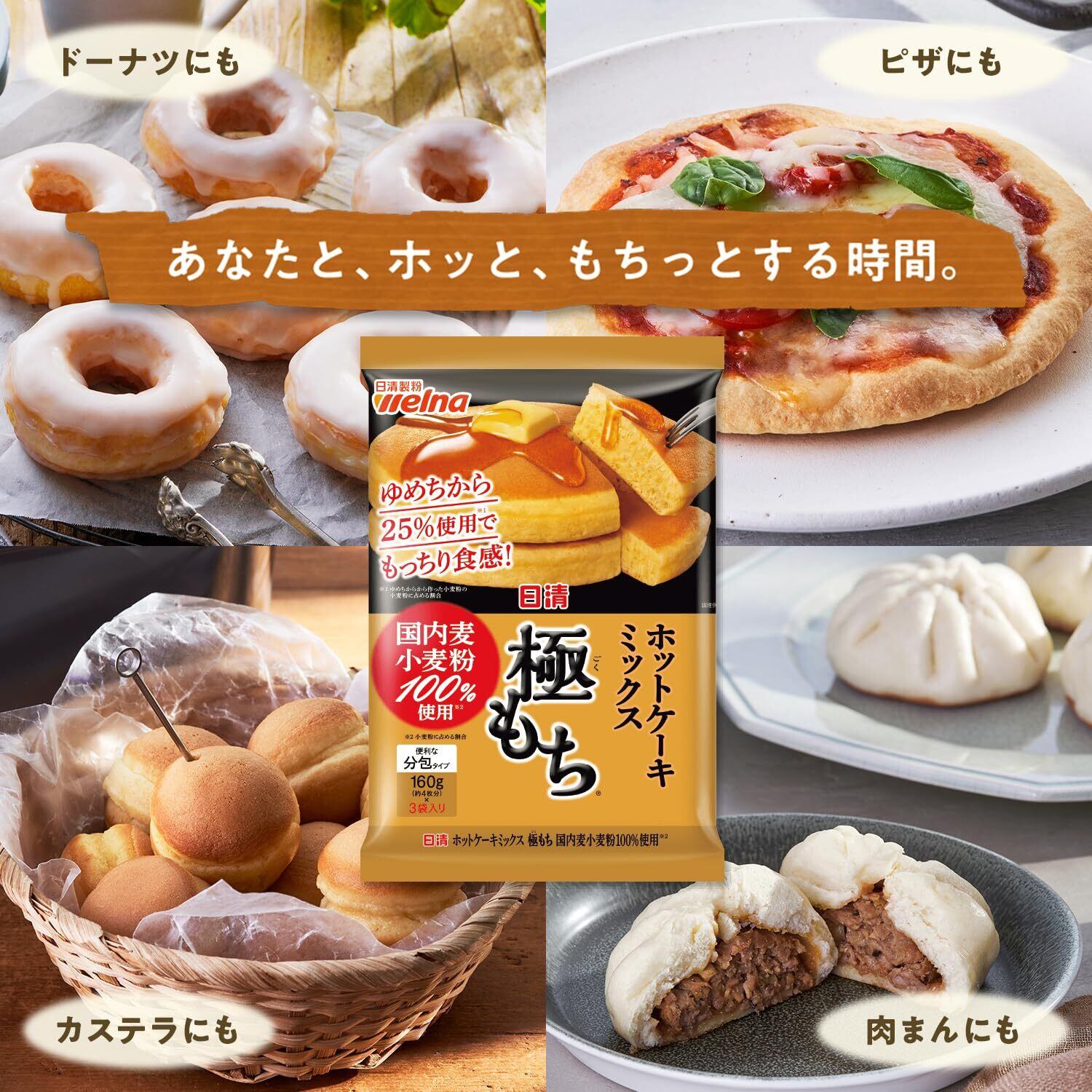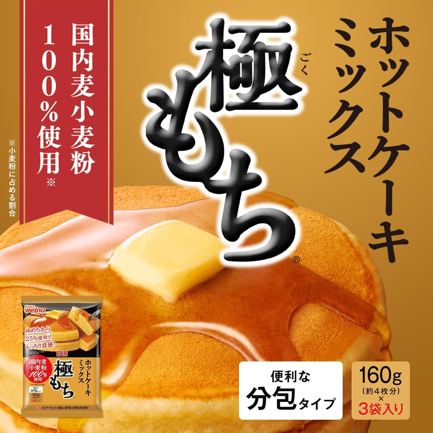 日清製粉ウェルナ ホットケーキミックス 極もち 国内麦 小麦粉 100% 使用 480g ×2個