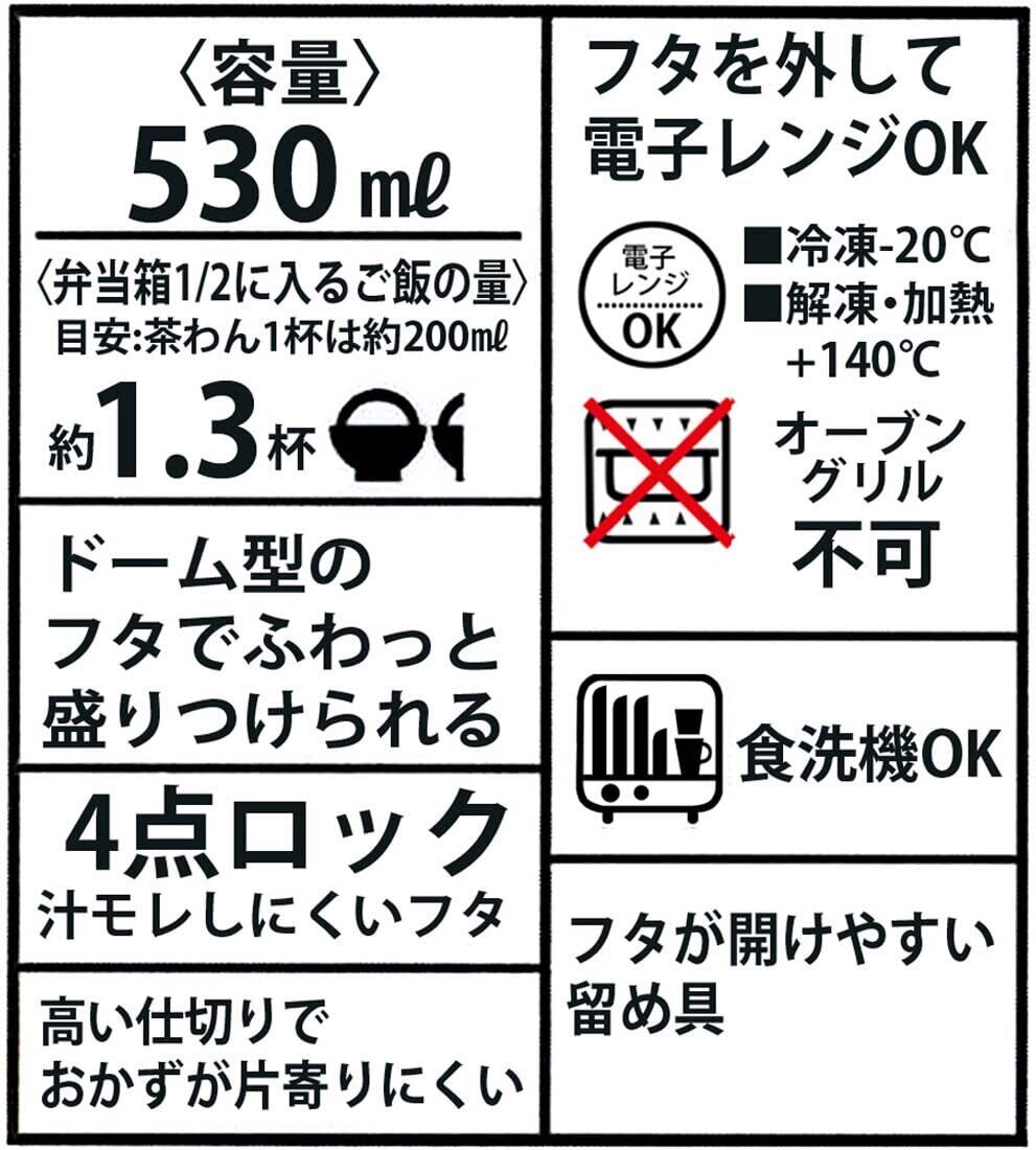 食洗機OK、フタを外せば電子レンジ使用OK、銀イオン抗菌加工、女性にちょうど良い530ml