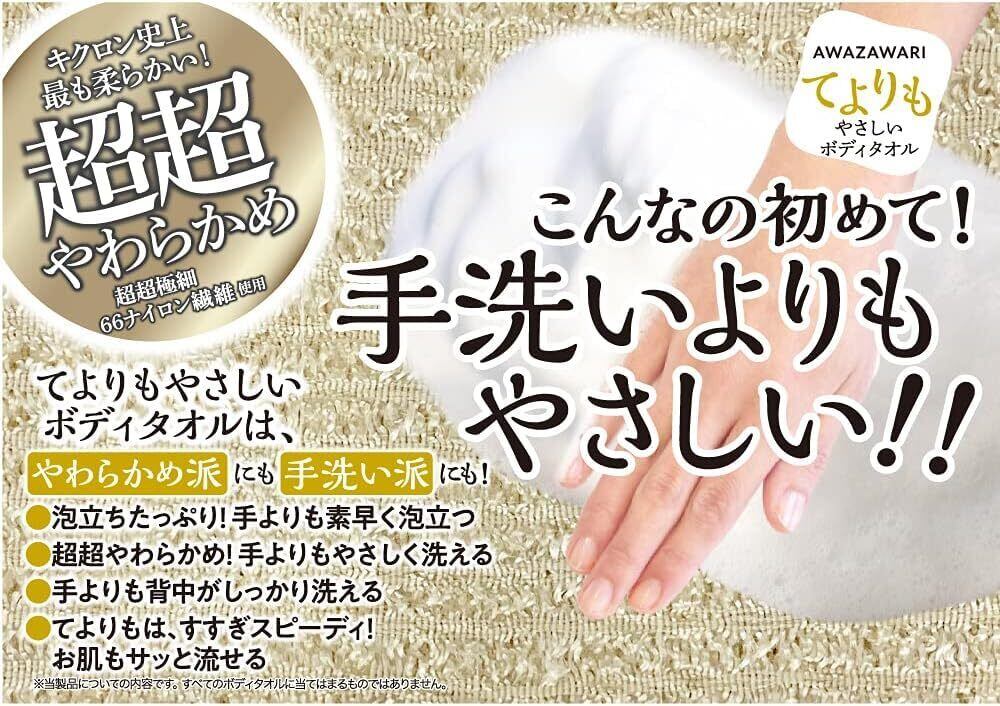 キクロン あわざわり てよりもやさしいボディタオル シャンパンゴールド 1枚入