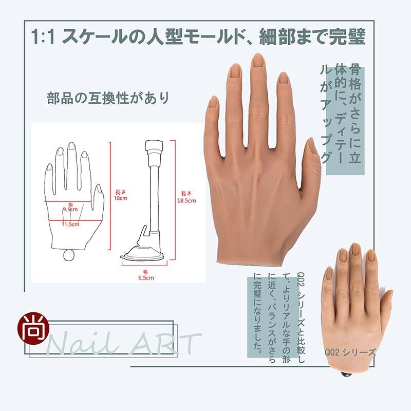 Naochi ネイル練習用シリコンハンド ハンドマネキン 極リアル ハンドモデル アクリルネイルトレーニング用 手の模型 ネイルチップ取り付け可 固定式 アクリルネイル用 ネイルアートツール トレーニングハンド 初心者向け 練習用 ハンド Q03-S18 (右手)