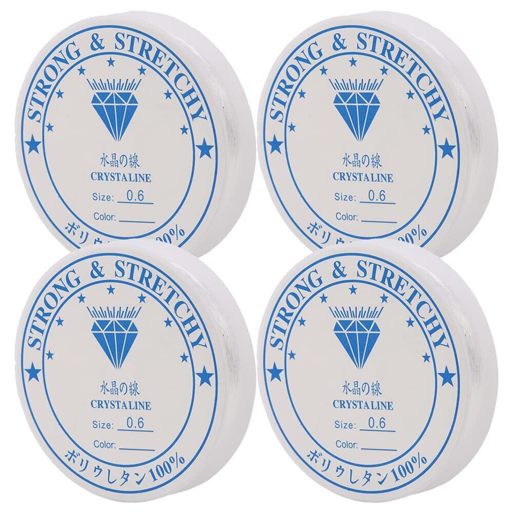 シリコンゴム 4巻セット 太さ0.6mm ブレスレット用 ゴム紐 弾力紐 水晶の線 伸びる糸 クリア色 DIY 手芸 手作り アクセサリー (太さ0.6mm)