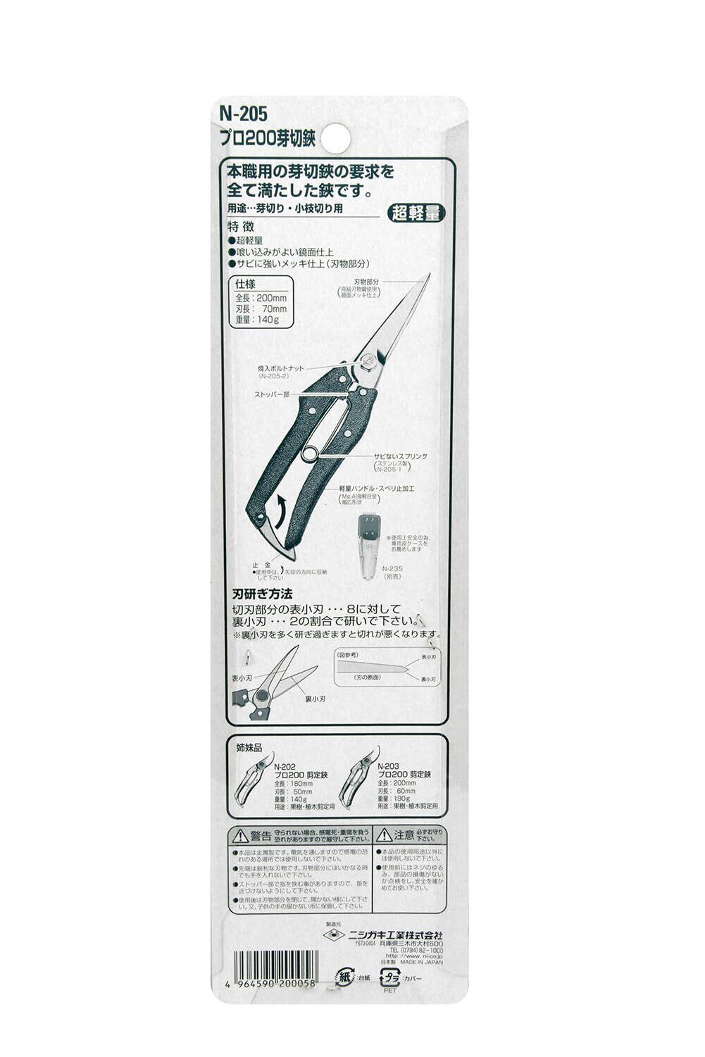 ニシガキ 芽切鋏 プロ200 200mm N-205